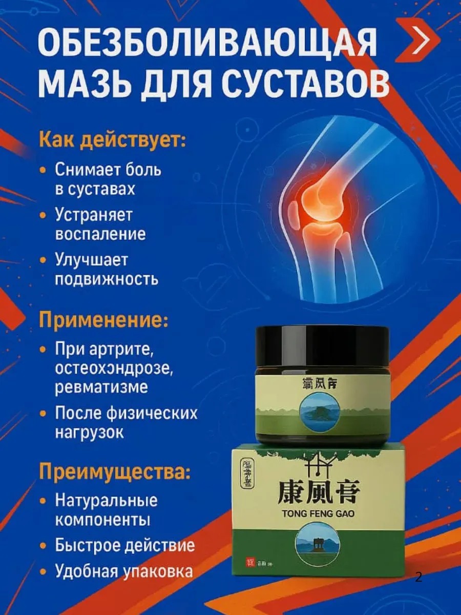 Обезболивающая мазь для суставов — эффективное средство для быстрого облегчения боли, уменьшения воспаления и снятия дискомфорта. Благодаря активным компонентам, мазь проникает глубоко в ткани, действуя именно там, где это нужно..