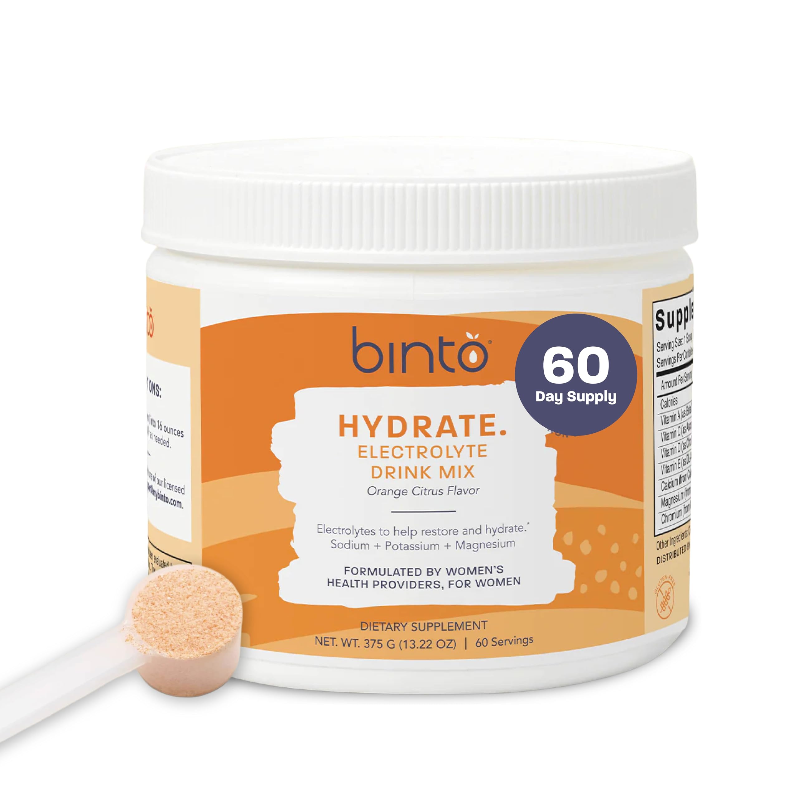 Binto Hydrate Electrolyte Drink Mix - Citrus Flavor - Sugar Free Hydration Powder for Women with L-Glutamine and Essential Electrolytes - Scoop Included for Convenience and Exact Portioning