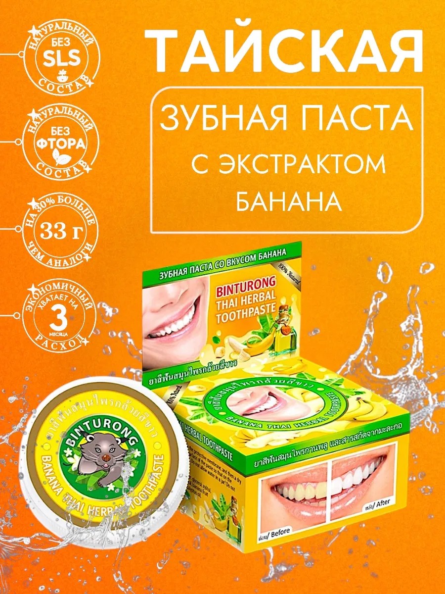 Тайская зубная паста отбеливающая с ароматом банана — это натуральное решение для бережного и эффективного ухода за полостью рта.