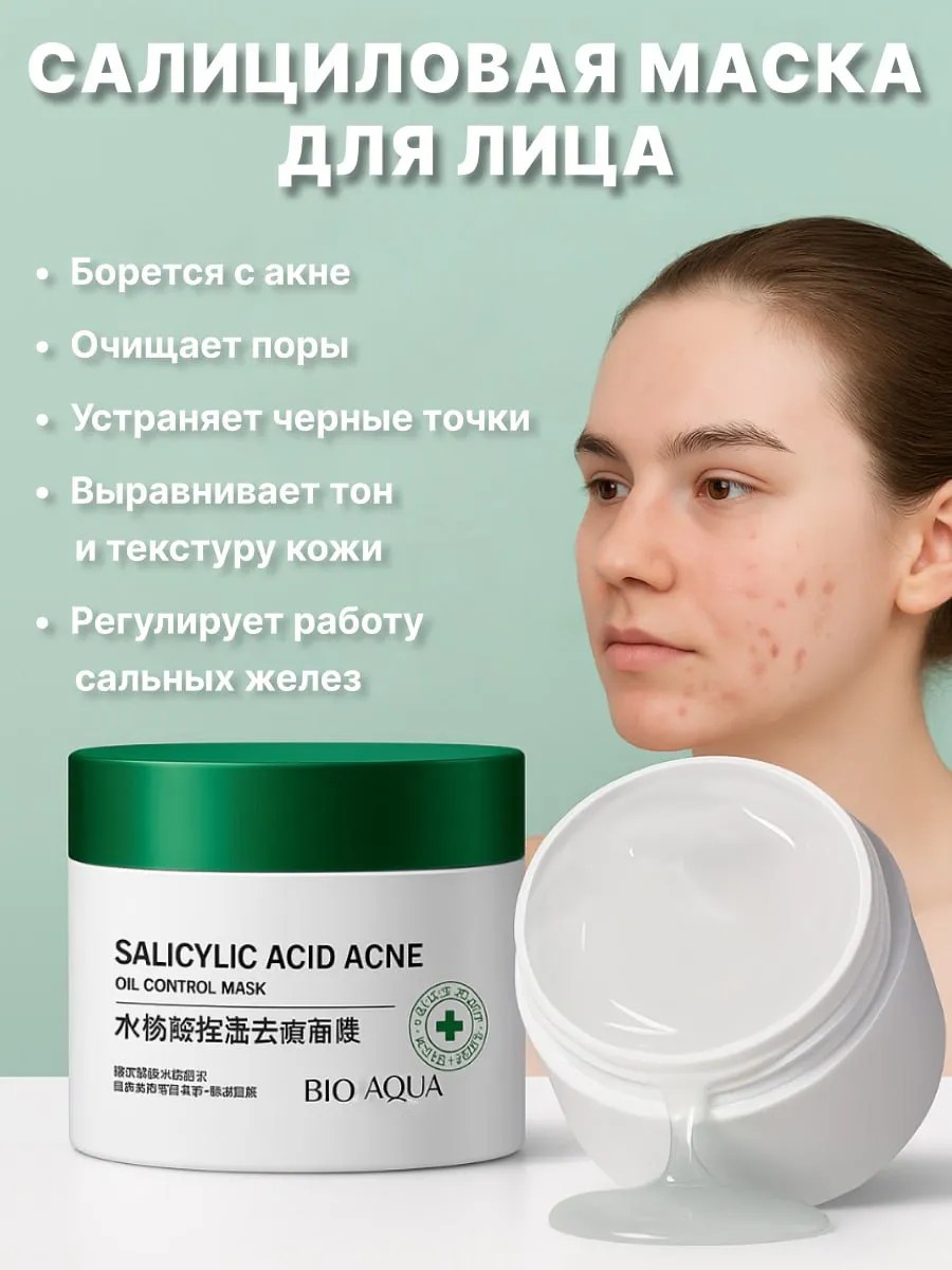 Очищающая маска-гель против акне, черных точек и жирного блеска. Маска BIO AQUA на основе салициловой кислоты разработана для глубокого очищения кожи, уменьшения воспалений и контроля избыточной выработки кожного сала. Идеально подходит для жирной, комбинированной и проблемной кожи. Продукт помогает предотвратить появление новых высыпаний и улучшает общее состояние кожи.