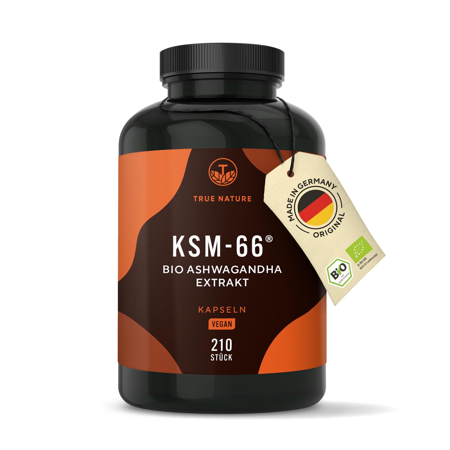INGREDIENTS Organic ashwagandha root extract, coating agent: hydroxypropyl methylcellulose (vegetable capsule shell), organic linseed mealMade in Germany: We are a German company with the highest quality standards for our products. Worry-free use for vegans or those with lactose and gluten intolerance. Highest purity is self-evident to us. We refrain from using magnesium stearate and additives such as sweeteners, colorants or preservatives. HIGH WITHANOLID CONTENT OF 5 – We play it safe and have each batch certified by an independent German laboratory for purity and effectiveness (see laboratory certificate analysis confirmation in the product images). The raw material is filled in Germany according to ISO and HACCP standards. XXL packaging: with 210 capsules of KSM-66 ashwagandha root extract you will be cared for for 3.5 months. Two capsules per day provide 600 mg of high-dose ashwagandha extract.Bio Ashwagandha - KSM-66 Premium ingrediënt - 210 capsules - 600 mg dagelijkse dosis - hoge dosering - originele Indiase Ashwagandha - Veganistisch - Duitse productie - TRUE NATURE 105 g (1er Pack) INGREDIËNTEN Biologisch ashwagandhawortelextract, coatingmiddel: hydroxypropylmethylcellulose (plantaardige capsulehuls), biologisch lijnzaadmeelMade in Germany: wij zijn een Duits bedrijf met de hoogste kwaliteitseisen aan onze producten. Zorgeloos gebruik voor veganisten of bij lactose- en glutenintolerantie. Hoogste zuiverheid is voor ons vanzelfsprekend. Wij zien af van magnesiumstearaat en additieven zoals zoetstoffen, kleurstoffen of conserveringsmiddelen. HOOG WITHANOLIDGEHALT VAN 5 – Wij spelen op veilig en laten elke partij door een onafhankelijk Duits laboratorium certificeren op zuiverheid en effectiviteit (zie laboratoriumcertificaat analysebevestiging in de productafbeeldingen). De grondstof wordt in Duitsland afgevuld volgens ISO- en HACCP-normen. XXL verpakking: met 210 capsules KSM-66 ashwagandha wortelextract ben je gedurende 3,5 maanden verzorgd. Twee capsules per dag leveren 600 mg hooggedoseerd ashwagandha-extract.