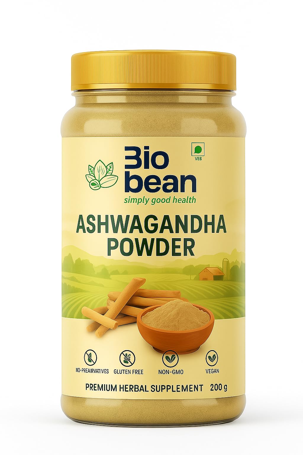 Experience the ancient power of Ayurveda with Bio Bean Ashwagandha Root Powder, made from pure, premium-quality Withania somnifera roots. Known as the "King of Herbs," Ashwagandha is a natural adaptogen that helps your body manage stress, boost energy levels, and support complete wellness. Our Ashwagandha is carefully cleaned, shade-dried, and finely ground to preserve maximum potency, aroma, and nutrient value. With zero additives, preservatives, or fillers, this powder delivers a clean, authentic herbal experience—perfect for daily use. Whether you're looking to support stress relief, stamina, muscle recovery, immune strength, or mental clarity, Bio Bean Ashwagandha Root Powder is a powerful addition to your wellness routine.Large Value Pack: Comes in a generous 25 oz (708 g) pack for long-term use and maximum freshness. Versatile Daily Use: Mix 1 teaspoon with warm water, milk, smoothies, shakes, or herbal tea for effective daily nutrition. No Additives or Preservatives: Non-GMO, Vegan, Gluten-Free, and free from chemicals, fillers, and artificial ingredients. Supports Immune Hormonal Balance: Helps strengthen immunity, balance hormones, and improve overall body functioning naturally. Boosts Energy Vitality: Promotes increased stamina, endurance, and overall physical performance—ideal for daily wellness support. Natural Stress Relief Relaxation: A powerful adaptogen that helps the body manage stress, reduce fatigue, and support calmness and mental clarity. 100 Pure Ashwagandha Root Powder: Made from premium-quality Withania somnifera roots, finely ground for superior potency and absorption.