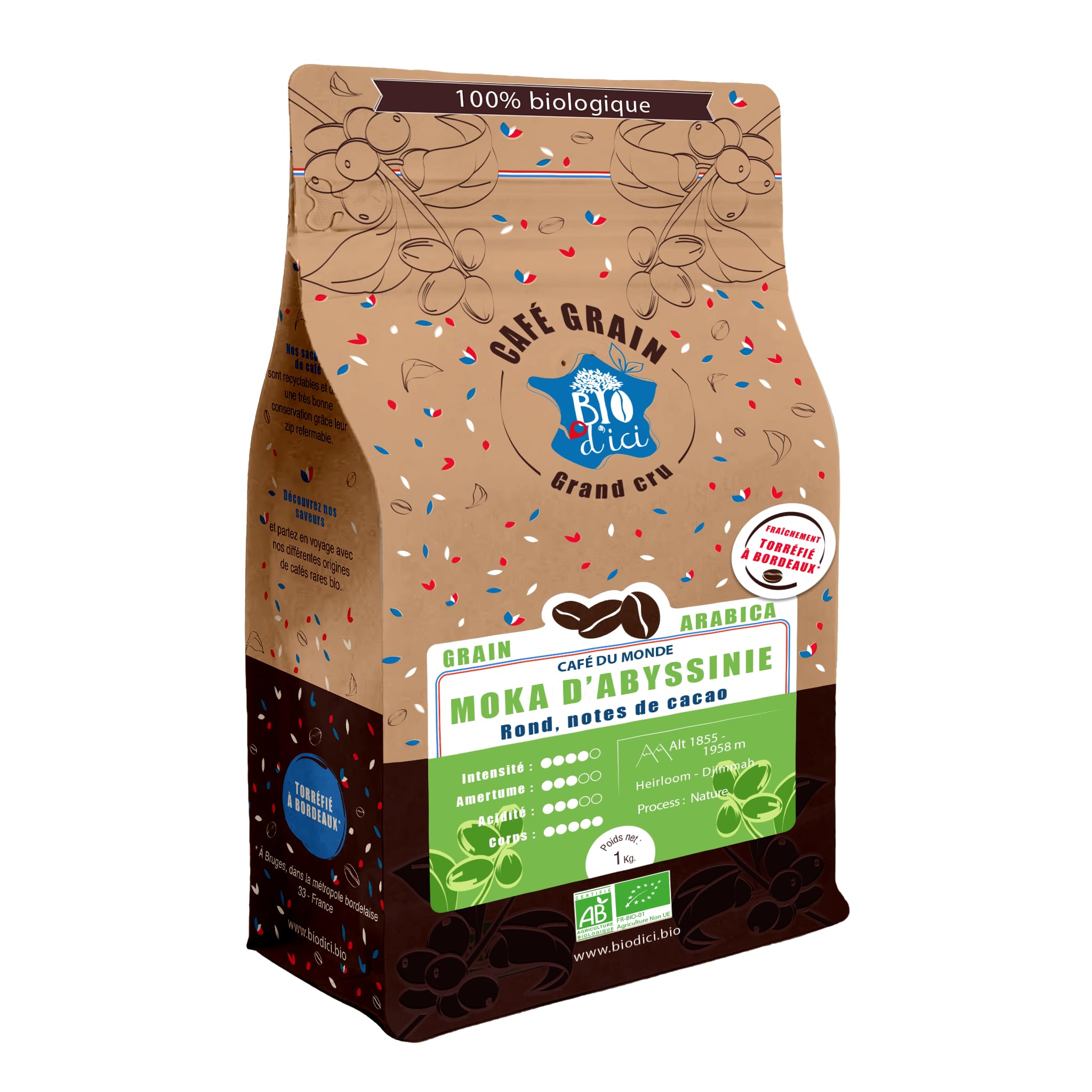 Made in France: Artisanal roasting carried out in Gironde, ensuring a high-quality product, processed and packaged with the greatest care. ? Easy Preparation: Our coffees are suitable for different preparation methods, whether in a filter coffee maker, French press or espresso machine, guaranteeing a perfect cup with every infusion. ? Eco-Friendly Packaging: Packaged in recyclable bags, our coffees are presented in environmentally friendly packaging, combining practicality and sustainability. ? Distinctive Aroma Profile: Each coffee offers characteristic notes – flowers and lime for the Limu from Ethiopia, nuts and caramel for Honduras, nuts for Colombia, and cocoa for the Mocha from Abyssinia – offering a rich and varied taste experience. Ethical Origin: Sourced from the best coffee-growing regions in the world (Ethiopia, Honduras, Colombia), our coffees are grown and harvested with respect for local traditions and the environment. Artisan Roasting: Carefully roasted in our workshop in France, each coffee reveals a unique aromatic profile, enhanced by slow and controlled roasting. 100 Organic and Natural: All our coffees are from organic farming, certified by Ecocert, without pesticides or GMOs, respecting the environment and your health. Premium Quality: Selection of the best coffee beans grown at high altitude, in exceptional terroirs around the world, guaranteeing a superior grade coffee.Fabriqué en France : Torréfaction artisanale réalisée en Gironde, assurant un produit de haute qualité, transformé et conditionné avec le plus grand soin. ? Préparation Facile : Nos cafés sont adaptés pour différentes méthodes de préparation, que ce soit en cafetière filtre, presse française ou machine à expresso, garantissant une tasse parfaite à chaque infusion. ? Emballage Écologique : Conditionnés dans des sachets recyclables, nos cafés sont présentés dans des emballages respectueux de l'environnement, alliant praticité et durabilité. ? Profil Aromatique Distinctif : Chaque café offre des notes caractéristiques – fleurs et citron vert pour le Limu d'Éthiopie, noix et caramel pour le Honduras, fruits à coque pour la Colombie, et cacao pour le Moka d'Abyssinie – offrant une expérience gustative riche et variée. Origine Éthique : Provenant des meilleures régions caféières du monde (Éthiopie, Honduras, Colombie), nos cafés sont cultivés et récoltés dans le respect des traditions locales et de l'environnement. Torréfaction Artisanale : Torréfiés avec soin dans notre atelier en France, chaque café révèle un profil aromatique unique, sublimé par une torréfaction lente et maîtrisée. 100 Bio et Naturel : Tous nos cafés sont issus de l'agriculture biologique, certifiés par Ecocert, sans pesticides ni OGM, respectant l'environnement et votre santé. Qualité Premium : Sélection des meilleurs grains de café cultivés à haute altitude, dans des terroirs d'exception à travers le monde, garantissant un café de grade supérieur.