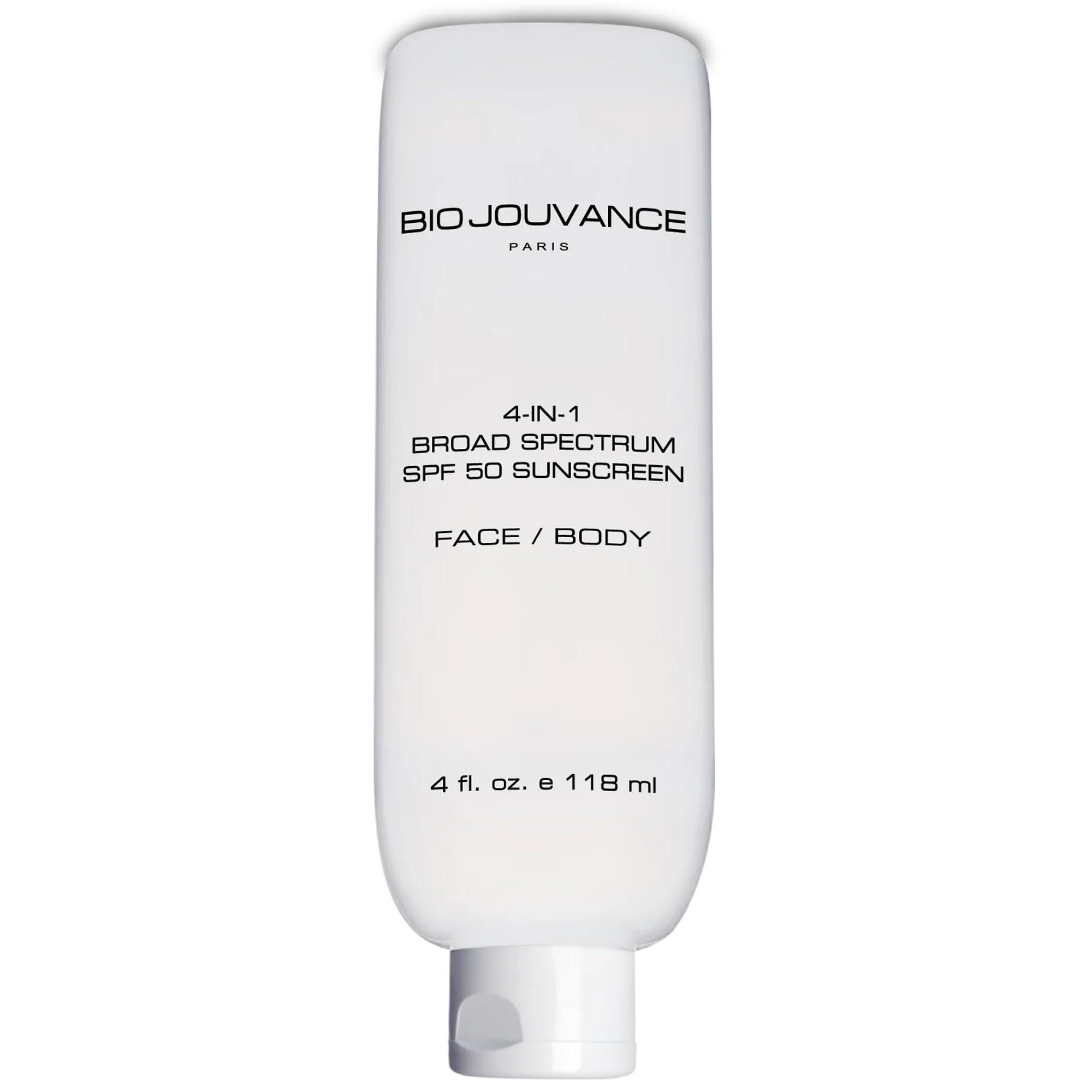 Bio Jouvance Paris 4 IN 1 SUNSCREEN SPF 50 UNA UVB Vitamin C Moisturizer Beta Carotene This broad-spectrum sunscreen with UVA and UVB filters provides an optimal protection against the sun's damaging rays. It's water-resistant, PABA-free, and non-oily. This unique sun screen is also enriched with Vitamins C and E. The active ingredients are microencapsulated in a Transdermal Delivery System known as Efficap™ to ensure maximum skin protection against environmental stress. Application of this multifunction sunscreen leaves the skin hydrated, smooth, and glowing. INSTRUCTIONS: Cleanse and tone the skin using Bio Jouvance Paris Cleanser and Toner appropriate for your skin type. Apply a generous amount of 4-in-1 Sunscreen SPF 50 to face, neck, décolletage, and body. Massage the cream into your skin using gentle and circular motions. Note: Bio Jouvance Paris 4 in1 SPF 50, can be used as a make-up base or under other moisturizers. INGREDIENTS: Hydrolized Water, organic Palm oil, Aloe Barbadensis Leaf Extract, Hyaluronic Acid, Beta Carotene, Vitamin E, Vitamin C, B6, B12, Beta Carotene, Carbomer, Zink Oxide, Natural Fragrances.MADE IN FRANCE WITH THE HIGHEST QUALITY INGREDIENTS – This Broad Spectrum Sunscreen is made in Paris, a world leader in personal care, product quality control testing. It's PABA-free and formulated with natural fragrance. WATER RESISTANT, MATTE FINISH, IDEAL FOR SPORT ACTIVITY – Our 4-in-1 Sunscreen SPF 50 is water resistant, so you can feel confident you have the sun protection you need when you're in the water or working up a sweat. ADVANCED INGREDIENT DELIVERY – The active ingredients in this formulation are microencapsulated in the Transdermal Delivery System "Efficap", ensuring maximum delivery into the skin for ultimate hydration, chemical and physical protection. BROAD SPECTRUM SPF 50 FOR EXCEPTIONAL PROTECTION – With broad-spectrum UVA and UVB filters, the Bio Jouvance Paris 4-in-1 SPF 50 Sunscreen provides optimal protection against the sun's damaging rays. 4-IN-1 PERFORMANCE WITH SKIN CARE BENEFITS – This multifunction sunblock and moisturizer leaves your skin hydrated and smooth with natural glow. It contains hydrating hyaluronic acid, soothing aloe vera, and protective antioxidants, Vitamin C, Vitamin E, and beta carotene.