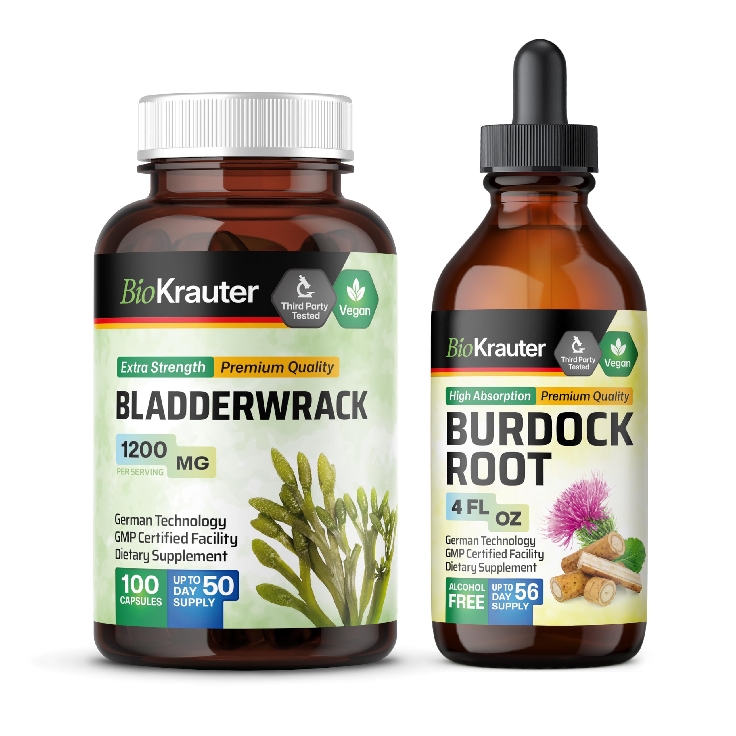 BIO KRAUTER Bladderwrack 100 Capsules & Burdock Root Tincture 4 Fl. Oz