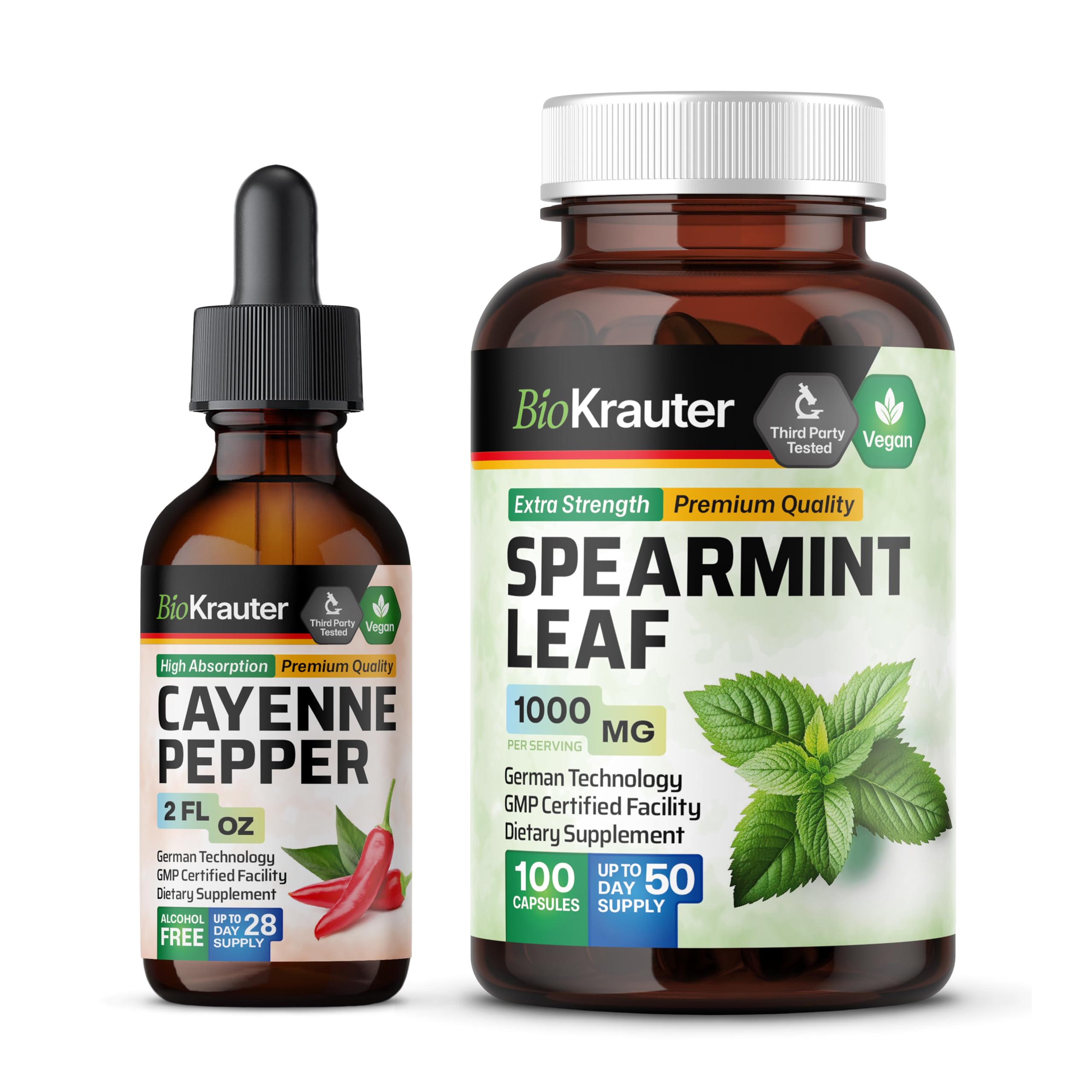 BIO KRAUTER Cayenne Pepper Tincture 2 Fl. Oz. & Spearmint 100 Capsules