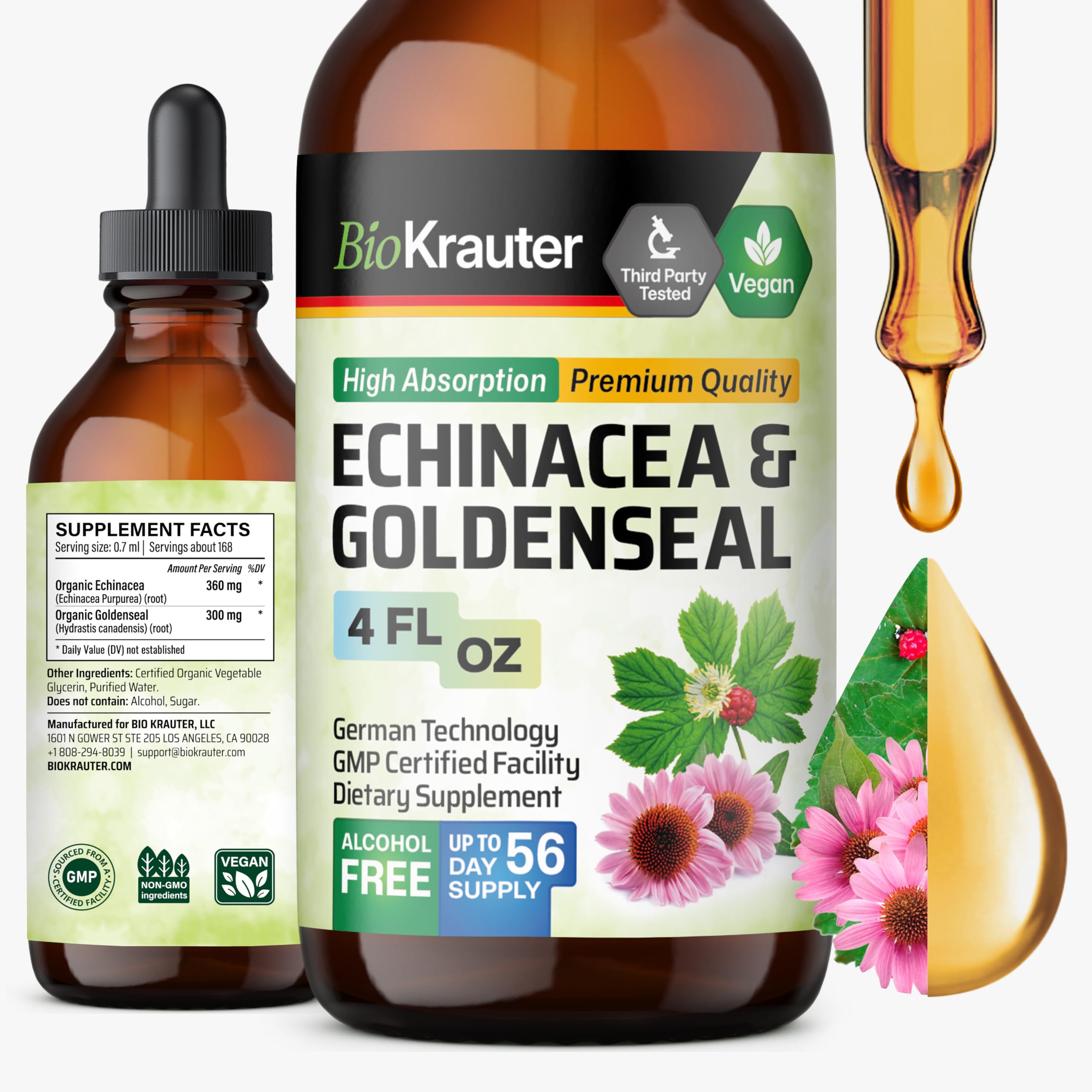 BIO KRAUTER Echinacea Goldenseal for Immune & Respiratory Support - Pure Vegan Echinacea Drops with Goldenseal - Natural Respiratory Supplements 4 Fl.Oz 56-Day Supply - Alcohol & Sugar Free 4 Fl Oz (Pack of 1)