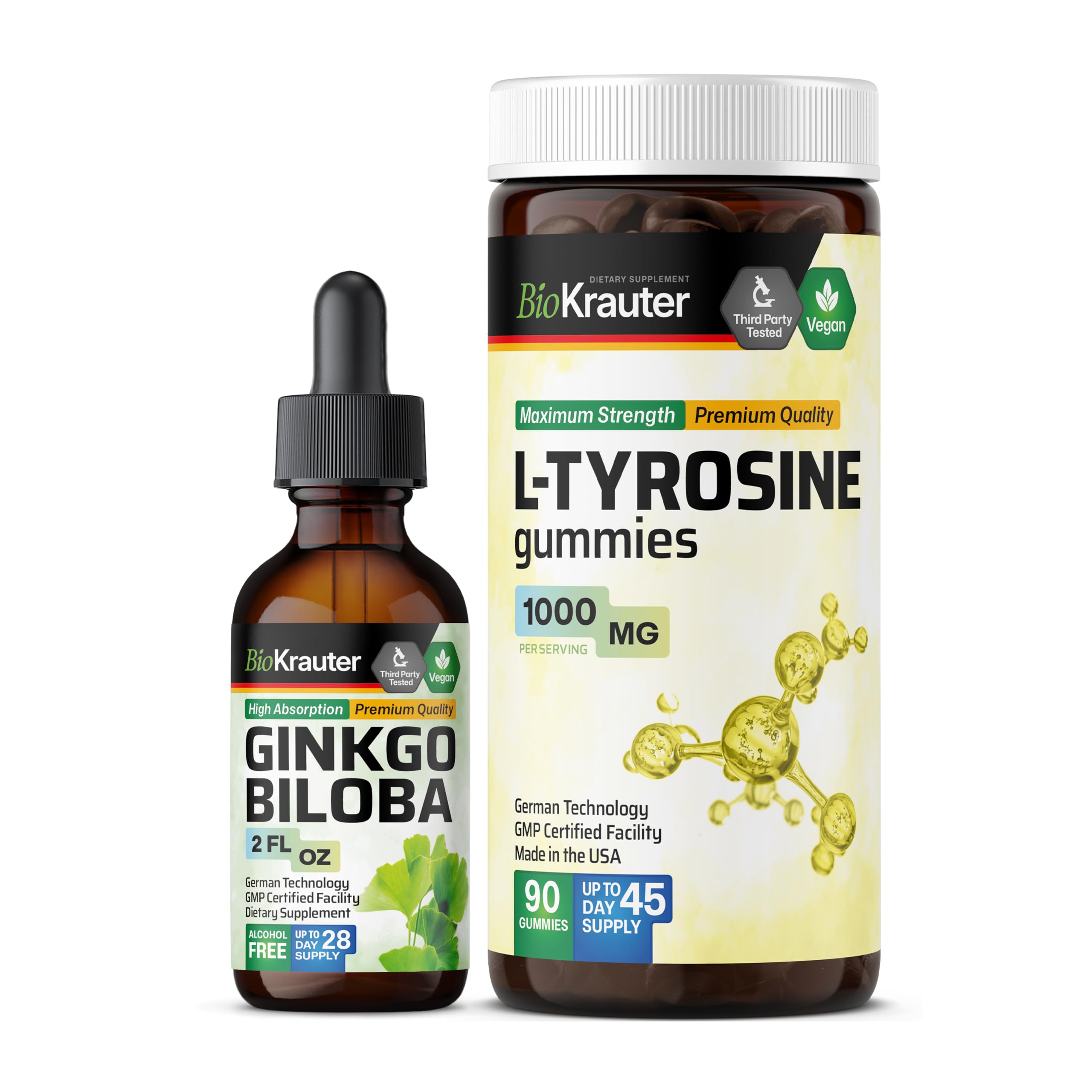 BIO KRAUTER Ginkgo Biloba Tincture 2 Fl. Oz. & L-Tyrosine 90 Gummies