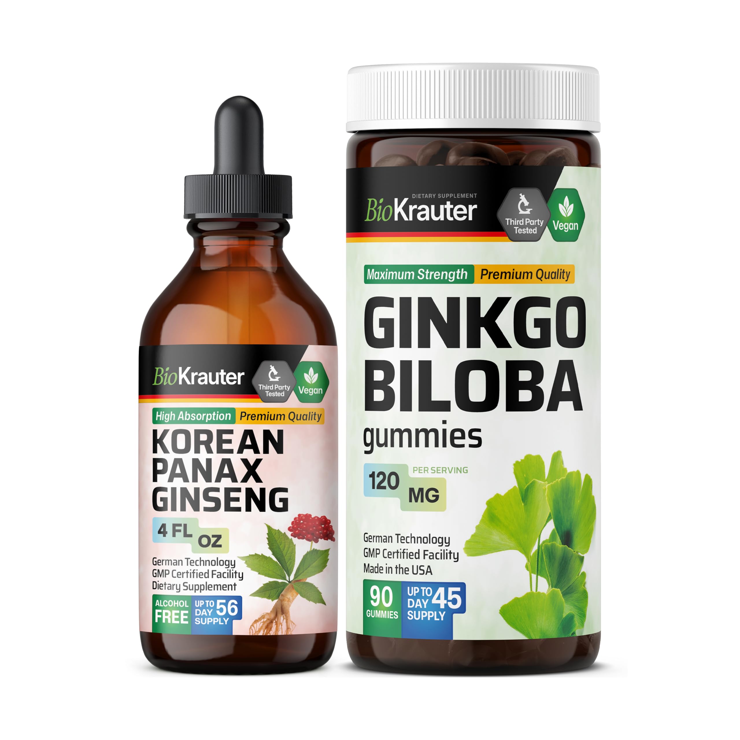 BIO KRAUTER Ginseng Tincture 4 Fl. Oz. & Ginkgo Biloba 90 Gummies