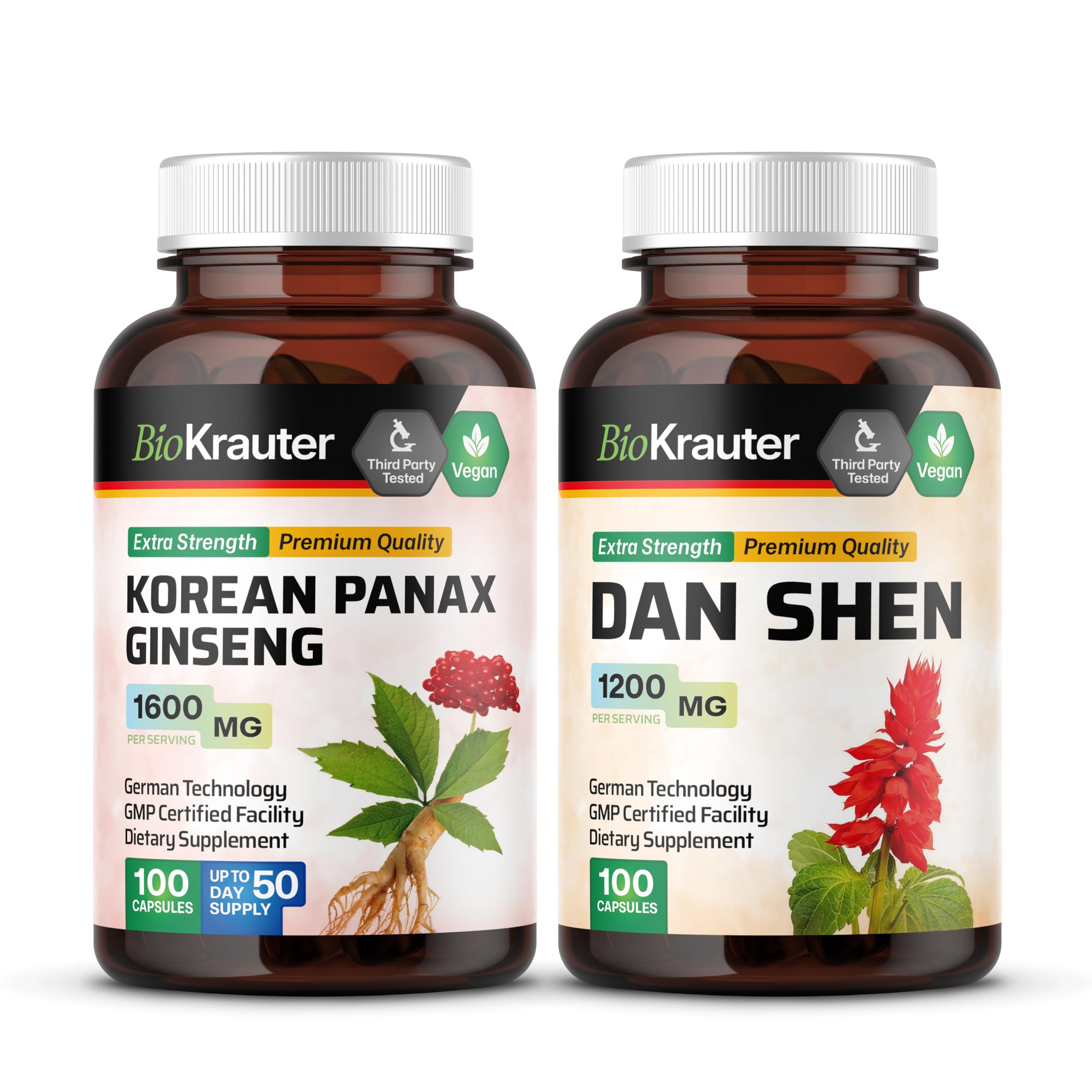 BIO KRAUTER Korean Panax Ginseng 100 Capsules & Dan Shen 100 Capsules