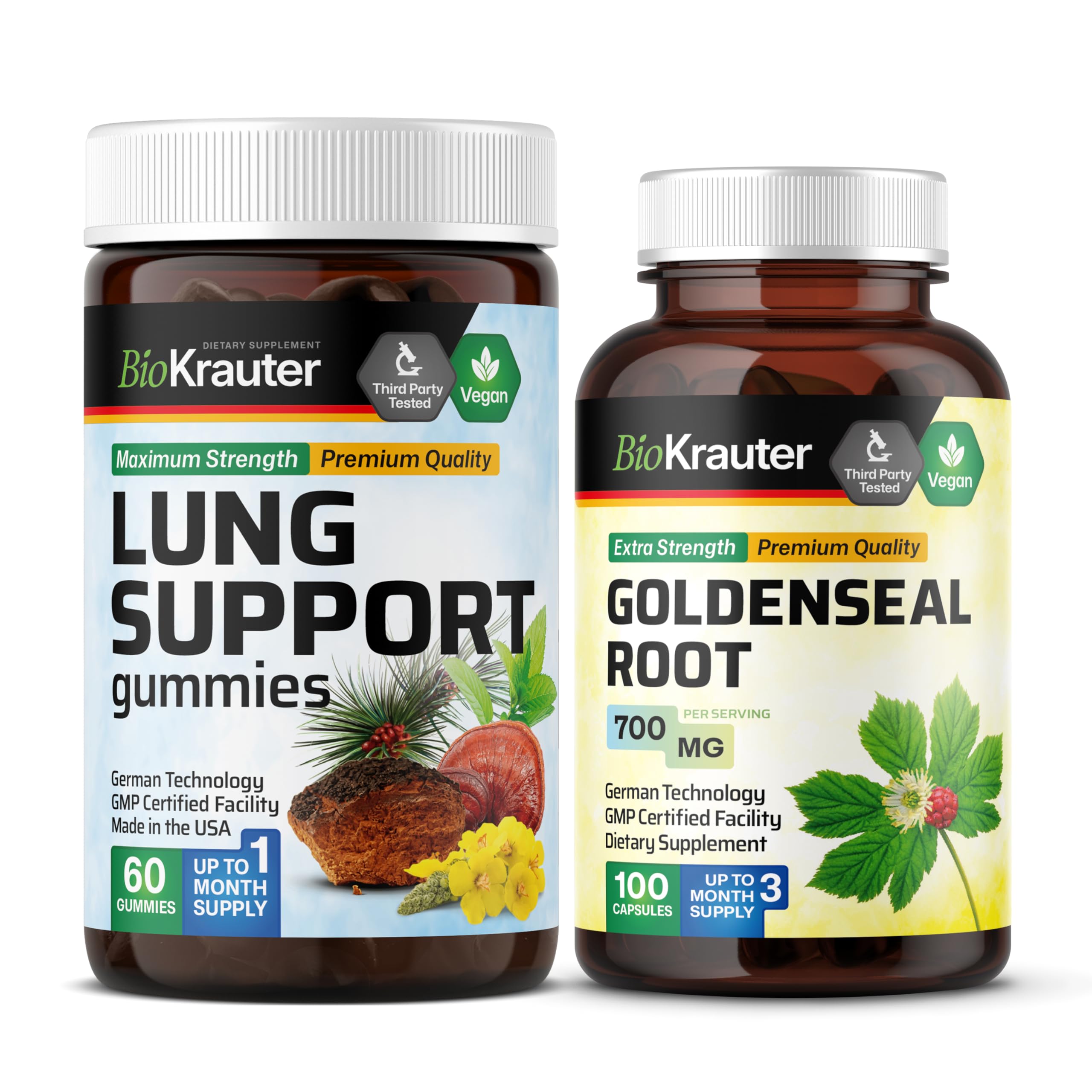 BIO KRAUTER Lung Support 60 Gummies & Goldenseal 100 Capsules