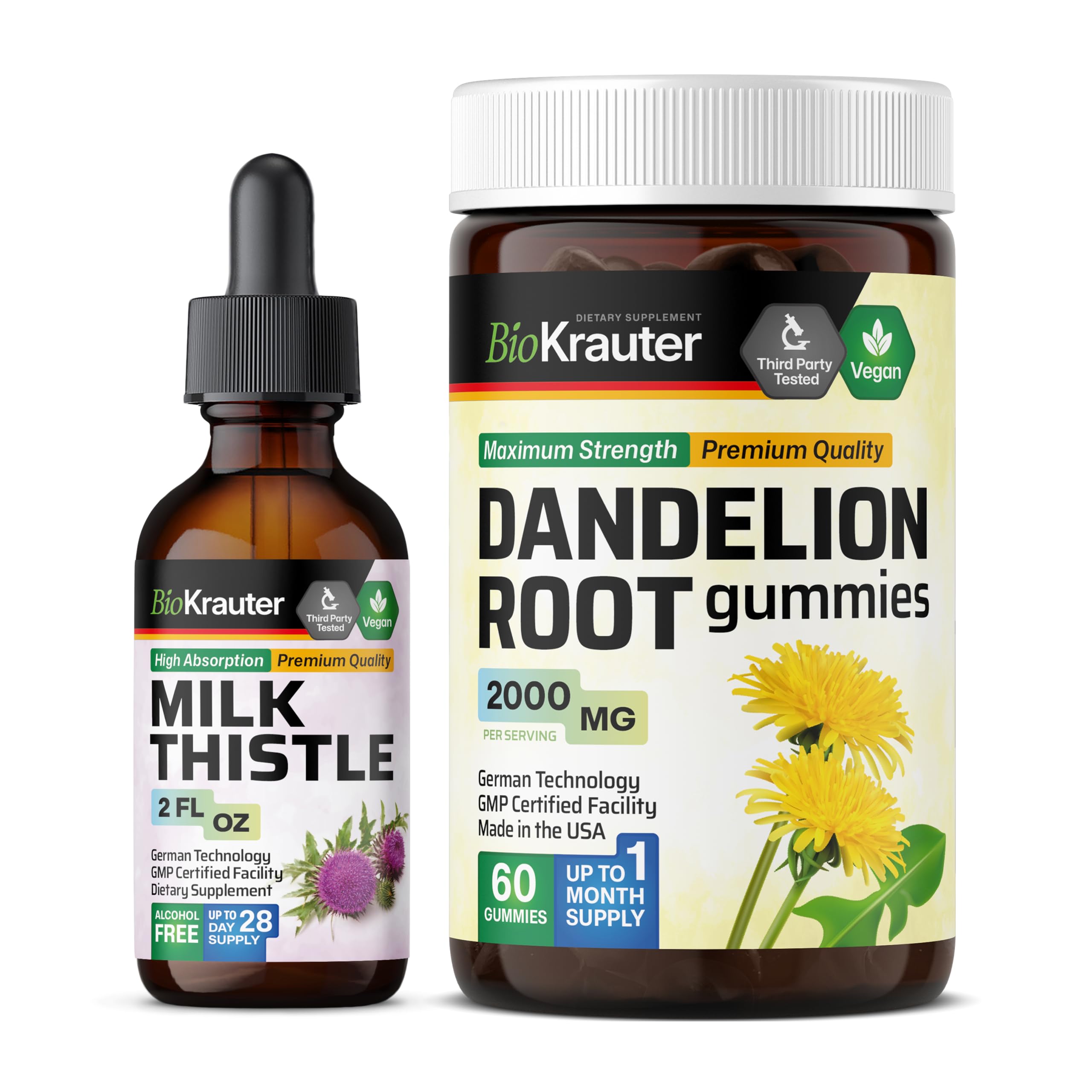 BIO KRAUTER Milk Thistle Tincture 2 Fl. Oz. & Dandelion 60 Gummies