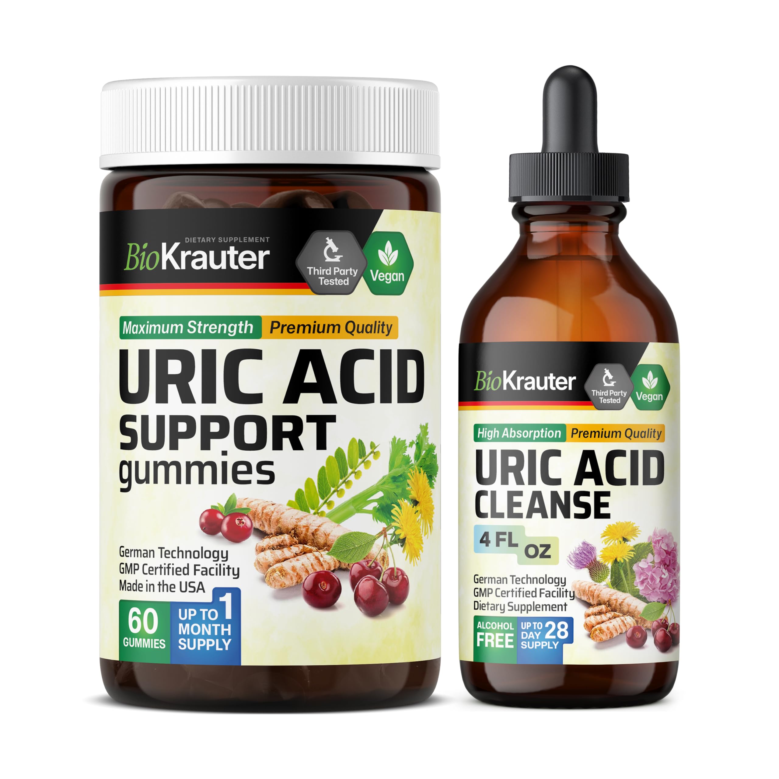 BIO KRAUTER Uric Acid Support 60 Gummies & Uric Acid Support Tincture 4 Fl. Oz