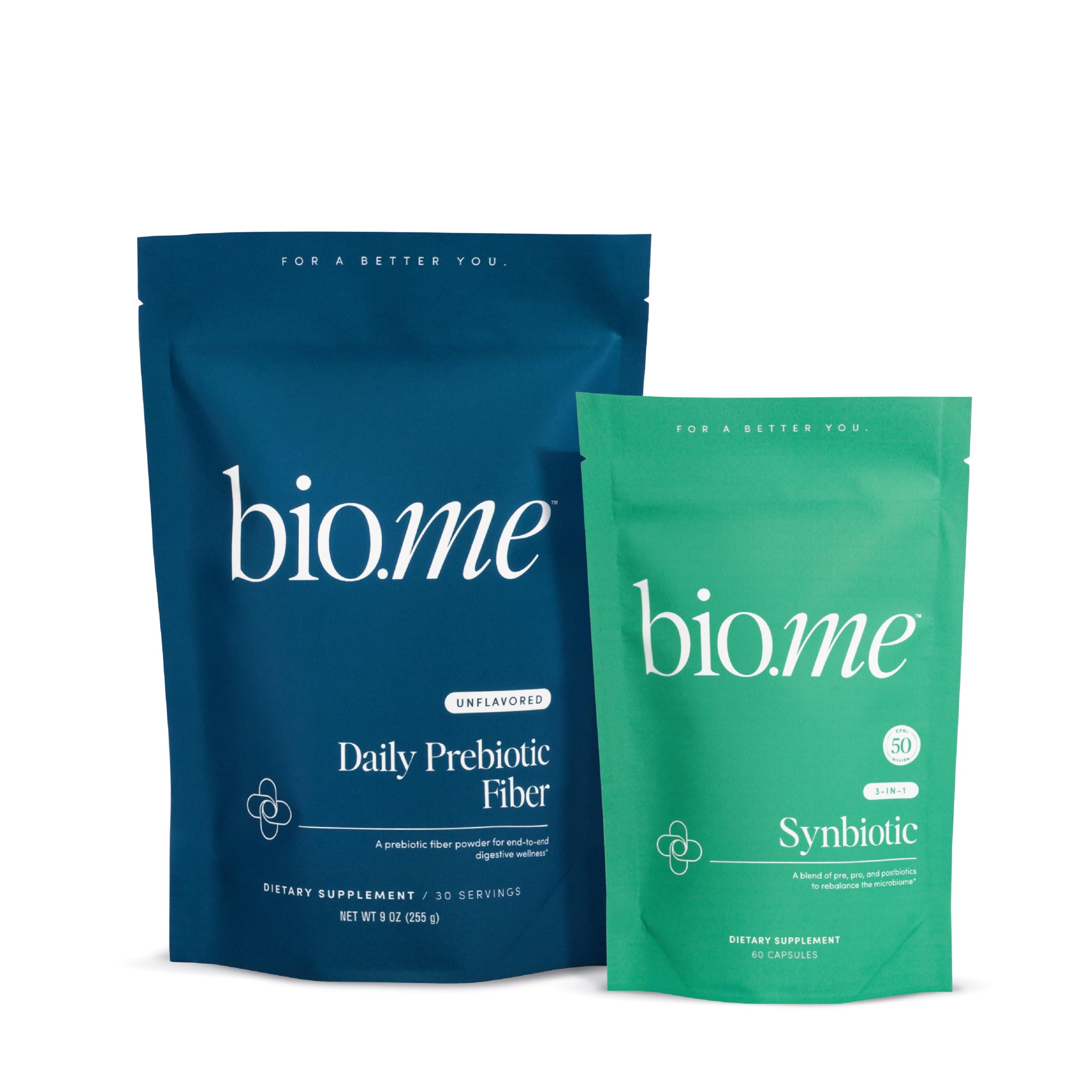 Bio.me Daily Prebiotic Fiber Powder - Fiber Supplement for Digestive Health, Bloating Relief Regularity, Non-GMO, Gluten Free - Unflavored, 30 servings Bio.me Synbiotic Capsules - 3-in-1 Prebiotic, Probiotic Postbiotic for Gut Health Immune Support, Non-GMO, Gluten Free, Vegan - 60 Capsules