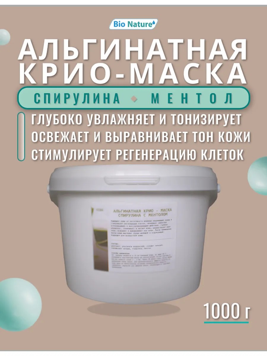 BIO NATURE Охлаждение и восстановление кожи! Профессиональная альгинатная крио-маска для лица с экстрактом спирулины и ментолом. Комплексный уход для уставшей кожи: снимает раздражение, стимулирует обновление клеток и восстанавливает здоровый вид.