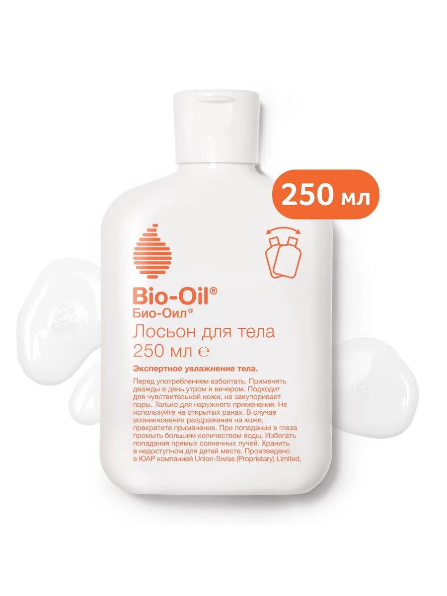 Лосьон для тела Bio-Oil создан для увлажнения и восстановления сухой кожи, помогает сохранять естественный баланс влаги, поддерживая оптимальное функционирование липидного бислоя. Средство восполняет запасы естественных масел в коже, которые могут быть вытеснены такими факторами, как экстремальная погода, вода с высоким содержанием химических веществ, частое купание и пересушивающее действие центрального отопления и кондиционирования воздуха. Лосьон помогает удерживать влагу и снижает скорость естественной потери воды через поверхность кожи. Для взрослых и детей старше трёх лет.