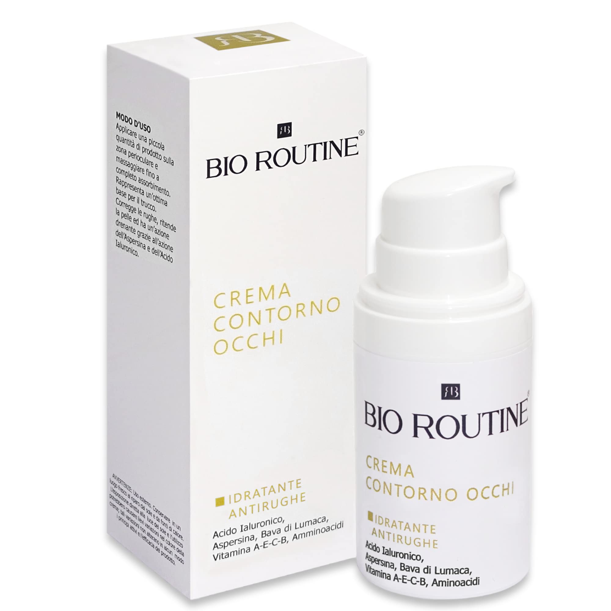 BIO ROUTINE Eye cream antiwrinkle eye cream for women and men moisturizing pure hyaluronic acid and snail mucus vitamin C B A and organic produced in Italy 30 ml