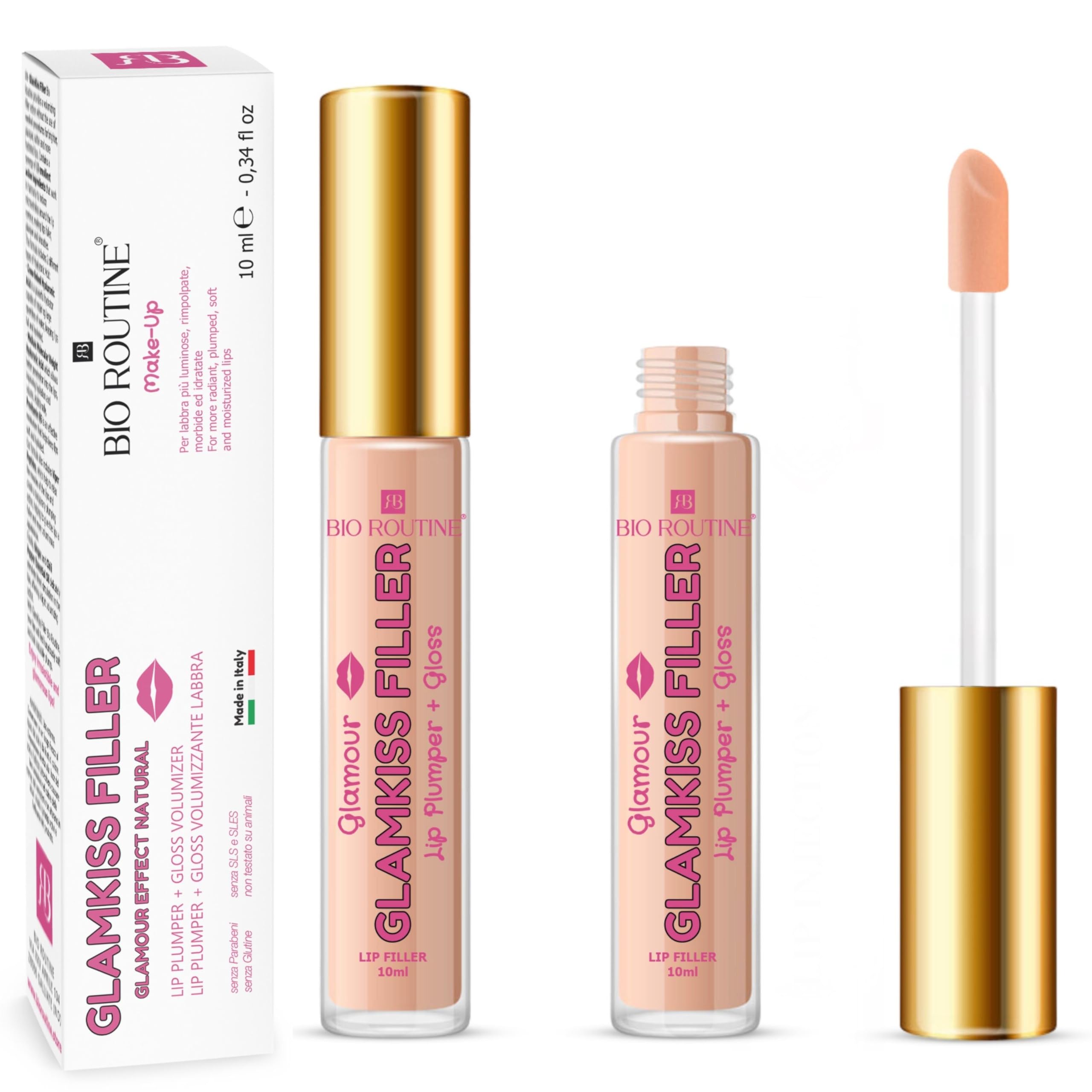BIO ROUTINE Glamkiss Filler Lip Plumper & Gloss Plumping and Moisturizing Lip Balm 2 Types of Hyaluronic Acid Chili Pepper Peptides Serum Viper Venom Volumizing Gloss with Vitamin E 10 ml
