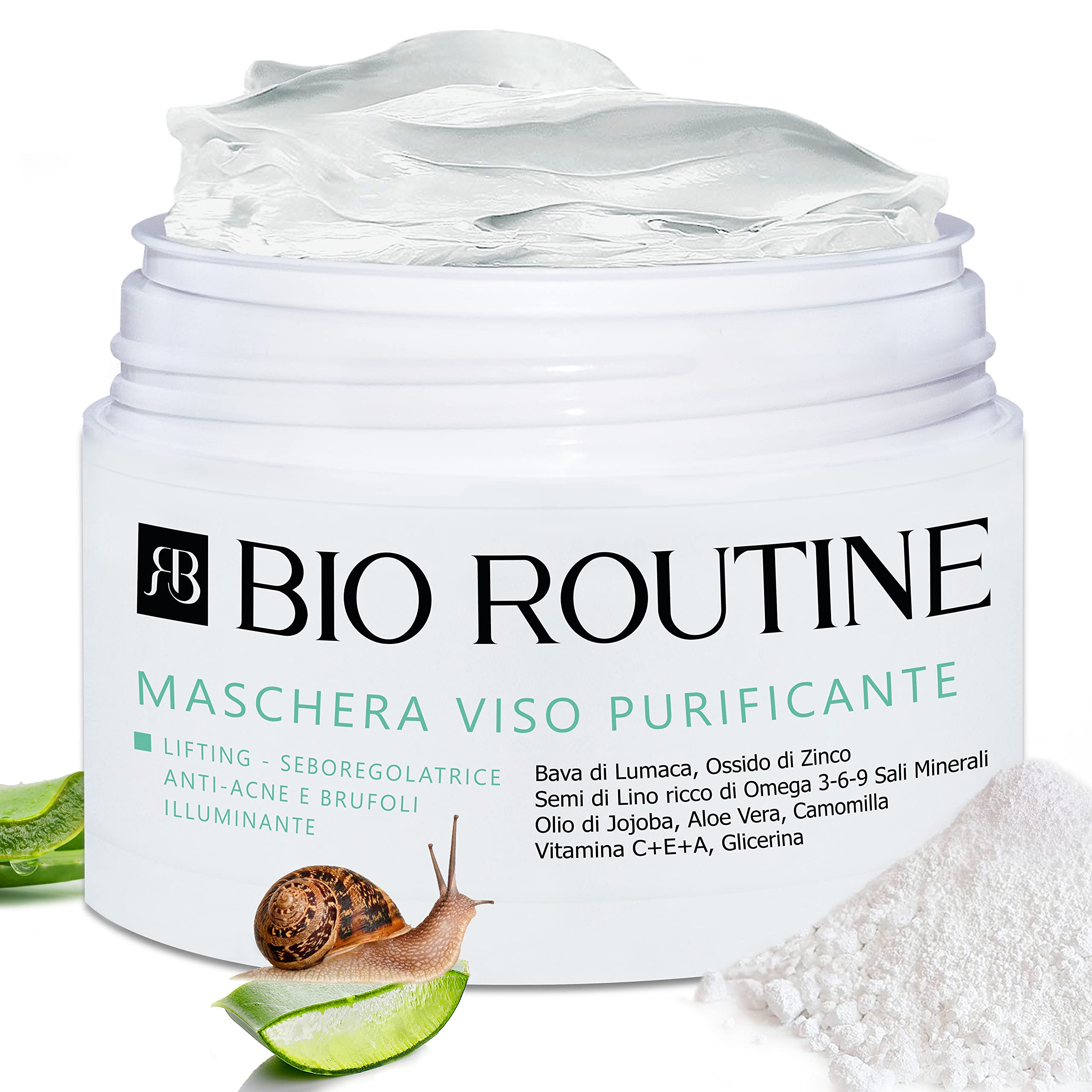 Do you suffer from blemishes? Problems with expression lines? Our Purifying and Hydrating Face Mask will help reduce redness and eliminate impurities from your face. This innovative and discreet mask, enriched with active ingredients such as minerals, vitamins A, E, and C, snail mucin, jojoba, aloe vera, and zinc oxide, stimulates collagen synthesis, combating aging and the first signs of wrinkles. It provides an anti-aging, lifting action with a tightening effect, while evening out skin tone. This face mask for men and women offers the following benefits: Anti-wrinkle Sebum-regulating Hydrating Antibacterial Nourishing Elasticizing Brightening Mattifying Thanks to the synergy of our plant-based and organic active ingredients, this face mask for oily skin is the perfect addition to your beauty routine! Who is it for? This anti-acne and lifting Bio Routine mask is ideal for those with fine lines, dehydrated skin, enlarged pores, and atopic dermatitis. A beauty routine for all skin types: dry, mature, oily, and combination. What are you waiting for? Stop worrying about your face. Try this brightening mask now and start your favorite skincare routine. Don't wait for things to get worse take care of your skin and your well-being. DIRECTIONS FOR USE Apply the product to a perfectly clean and dry face and neck. Leave on for 5 to 10 15 minutes, then remove with lukewarm water, gently massaging in slow, circular motions until completely absorbed. For oily and sebum-prone skin, use 2 to 4 times a week otherwise, use 1 to 2 times a week. Treatment for oily, acne-prone skin, skin with blemishes, dark spots, and expression lines. Ideal for all skin types: oily, sensitive, dry, inflamed, acne-prone, and mature. SAFETY WARNING For external use only. Store in a cool place, away from sunlight and heat sources. See moreOur Bio Routine face mask is available in a convenient 100ml size, easy to use and suitable for frequent use, for a purified, hydrated, and radiant complexion. This hydrating, brightening, and anti-blemish face mask is suitable for all skin types, from normal to dry, including combination and oily skin. Its formula helps reduce blemishes and imperfections. The purifying and hydrating face mask with zinc oxide helps purify the skin and prevent acne, while providing a moisturizing action that leaves it softer and brighter. Anti-wrinkle and brightening, our face mask contains powerful ingredients like snail mucin and vitamin C, which help reduce wrinkles and illuminate the skin, giving a more youthful and radiant appearance. The Bio Routine purifying face mask for men and women is a powerful purifying, anti-wrinkle, hydrating, and brightening treatment that helps eliminate impurities and dead skin cells, improving skin texture and tone.Bio Routine Masque Visage Purifiant Homme et Femme Crème - Action Anti-Rides Hydratante Anti-Taches Éclaircissante Bave d'Escargot Oxyde de Zinc Vitamine C 100MLDESCRIPTION DU PRODUIT DESCRIPTION DU PRODUIT Vous souffrez d'imperfections ? Des problèmes de rides d'expression ? Notre Masque Visage Purifiant et Hydratant vous aidera à réduire les rougeurs et à éliminer les impuretés du visage. Ce masque innovant et discret, enrichi en actifs tels que les minéraux, les vitamines A E C, la bave d'escargot, le jojoba, l'aloe vera et l'oxyde de zinc, stimule la synthèse du collagène, agissant contre le vieillissement et les premières rides. Il exerce une action "liftante" anti-âge avec effet tenseur, tout en uniformisant le teint. Le masque visage homme et femme offre une action : Anti-rides Séborrégulatrice Hydratante Antibactérienne Nourrissante Élastifiante Éclaircissante Matifiante Grâce à la synergie de nos actifs végétaux et bio, le masque visage pour peau grasse est l'allié parfait pour votre routine beauté ! À qui est-il destiné ? Ce masque anti-acné et liftant Bio Routine est idéal pour ceux qui ont des petites rides, une peau déshydratée, des pores dilatés et une dermatite atopique. Une routine beauté pour tous les types de peau : sèche, mature, grasse, mixte. Qu'attendez-vous ? Cessez de vous inquiéter pour votre visage. Essayez maintenant le masque éclaircissant et commencez votre routine de soins préférée. N'attendez pas que la situation s'aggrave, prenez soin de votre peau et de votre bien-être. MODE D'EMPLOI Appliquer le produit sur le visage et le cou parfaitement propres et secs. Laisser agir pendant 5 à 10 15 minutes, puis retirer avec de l'eau tiède en massant légèrement par des mouvements circulaires lents jusqu'à absorption complète. Pour les peaux grasses et à forte sécrétion de sébum, utiliser 2 à 4 fois par semaine, sinon 1 à 2 fois par semaine. Traitement pour les peaux grasses, acnéiques, avec des boutons, taches sombres et rides d'expression. Idéal pour tous types de peau : grasses, sensibles, sèches, inflammées, acnéiques et matures AVERTISSEMENT DE SÉCURITÉ Usage externe. Conserver dans un endroit frais, à l'abri du soleil et des sources de chaleur. Voir plusNotre masque visage Bio Routine est disponible en un format pratique de 100 ml, facile à utiliser et adapté à une utilisation fréquente, pour un visage purifié, hydraté et lumineux. Masque visage hydratant, éclaircissant et anti-taches : adapté à tous les types de peau, de normale à sèche, en passant par les peaux mixtes et grasses, grâce à sa formule, il aide à réduire les taches et les imperfections. Masque visage purifiant et hydratant avec oxyde de zinc : la présence d'oxyde de zinc dans notre masque aide à purifier la peau et à prévenir l'acné, tout en offrant une action hydratante qui la rend plus douce et lumineuse. Anti-rides et éclaircissant, notre masque visage contient des ingrédients puissants comme la bave d'escargot et la vitamine C, qui aident à réduire les rides et à illuminer la peau, donnant un aspect plus jeune et radieux. Masque visage purifiant Bio Routine pour homme et femme : un p