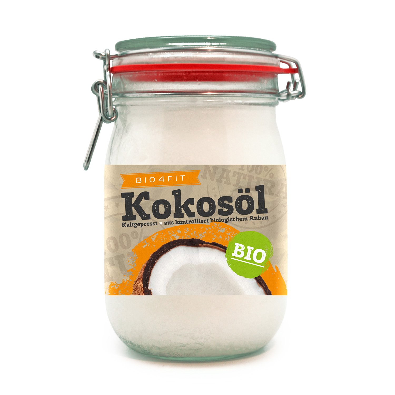 : Coconut oil is used in a variety of use in the preparation of dishes and in the production of natural cosmetics.It is a multi -talent for the kitchen and bathroom.Our coconut oil (native) is obtained in Sri Lanka (South Asia) from sun -ripened coconuts from biological cultivation, which are processed gently in cold pressing within 72 hours immediately after the harvest, so that the coconuts are still full with valuable nutrients.Bio4fit Bio coconut oil native (cold -pressed) contains the medium -chain fatty acids of lauric acid up to 53 , as well as the capylic acid up to 8 , the capric acid up to 6.5 and other vitamins, minerals and trace elements.Bio coconut oil is also the right choice for everyone who value on natural cosmetics. Ingredients ingredients: 100 pure cold -pressed organic coconut oilour organic coconut oil cold and raw food quality is obtained from sun -ripened coconuts from biological cultivation.The oil is also often used for the production of natural cosmetics.It is also great for removal.Organic coconut oil native cold -pressed (VCO) in raw food quality.With a heavenly coconut scent and taste.Coconut oil contains the medium -chain fatty acids and lauric acid up to 53 , as well as the caprylic acid up to 8 , the capric acid up to 6.5 and other vitamins and minerals.Our organic coconut oil is a very natural oil without additives and extremely versatile.: Kokosöl findet vielseitige Verwendung bei der Zubereitung von Speisen und in der Herstellung von Naturkosmetika. Es ist ein Multitalent für Küche und Bad. Unser Kokosöl (nativ) wird in Sri Lanka (Südasien) aus sonnengereiften Kokosnüssen aus biologischen Anbau gewonnen, die direkt nach der Ernte, innerhalb von 72 Stunden, schonend in einer Kaltpressung verarbeitet werden, so dass die Kokosnüsse noch randvoll mit wertvollen Nährstoffen sind. Bio4Fit Bio Kokosöl nativ (kaltgepresst) enthält die mittelkettigen Fettsäuren Laurinsäure bis zu 53 , sowie die Caprylsäure bis zu 8 , die Caprinsäure bis zu 6,5 und weitere Vitamine, Mineralien und Spurenelemente. Auch für alle, die Wert auf eine natürliche Kosmetik ist Bio Kokosöl kaltgepresst (nativ) die richtige Wahl. Inhaltsstoffe Zutaten: 100 reines kaltgepresstes Bio Kokosölunser Bio Kokosöl kaltgepresst und in Rohkostqualität wird aus sonnengereiften Kokosnüssen aus biologischen Anbau gewonnen. Das Öl wird auch gerne zur Herstellung von Naturkosmetik verwendet. Es ist auch prima zum Abschminken geeignet. Bio Kokosöl nativ kaltgepresst (VCO) in Rohkostqualität. Mit einem himmlischen Kokosduft und –Geschmack. Kokosöl enthält die mittelkettigen Fettsäuren und Laurinsäure bis zu 53 , sowie die Caprylsäure bis zu 8 , die Caprinsäure bis zu 6,5 und weitere Vitamine und Mineralien. Unser Bio Kokosöl ist ein ganz natürliches Öl ohne Zusatzstoffe und äußerst vielseitig einsetzbar.Bio4Fit Bio Kokosöl, nativ im Glas, 1kg Bio Kokosfett, Kokosnussöl, Premium, Nativ, Kaltgepresst, Rohkostqualität, Rein (1000ml) - zum Kochen, Braten und Backen, für Haare und Haut (Bügel Glas) 1 l (1er Pack)