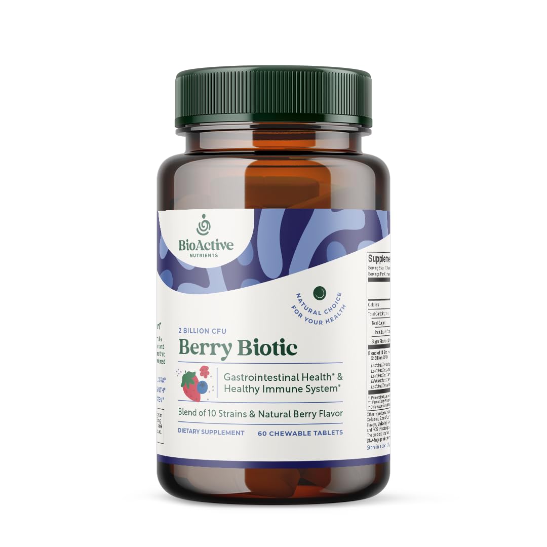 BIOACTIVE NUTRIENTS BerryBiotic Chewable Probiotics & Prebiotics Supplement-for Men Women and Children-10 Verified Strains-2 Billion CFUs-60 Count