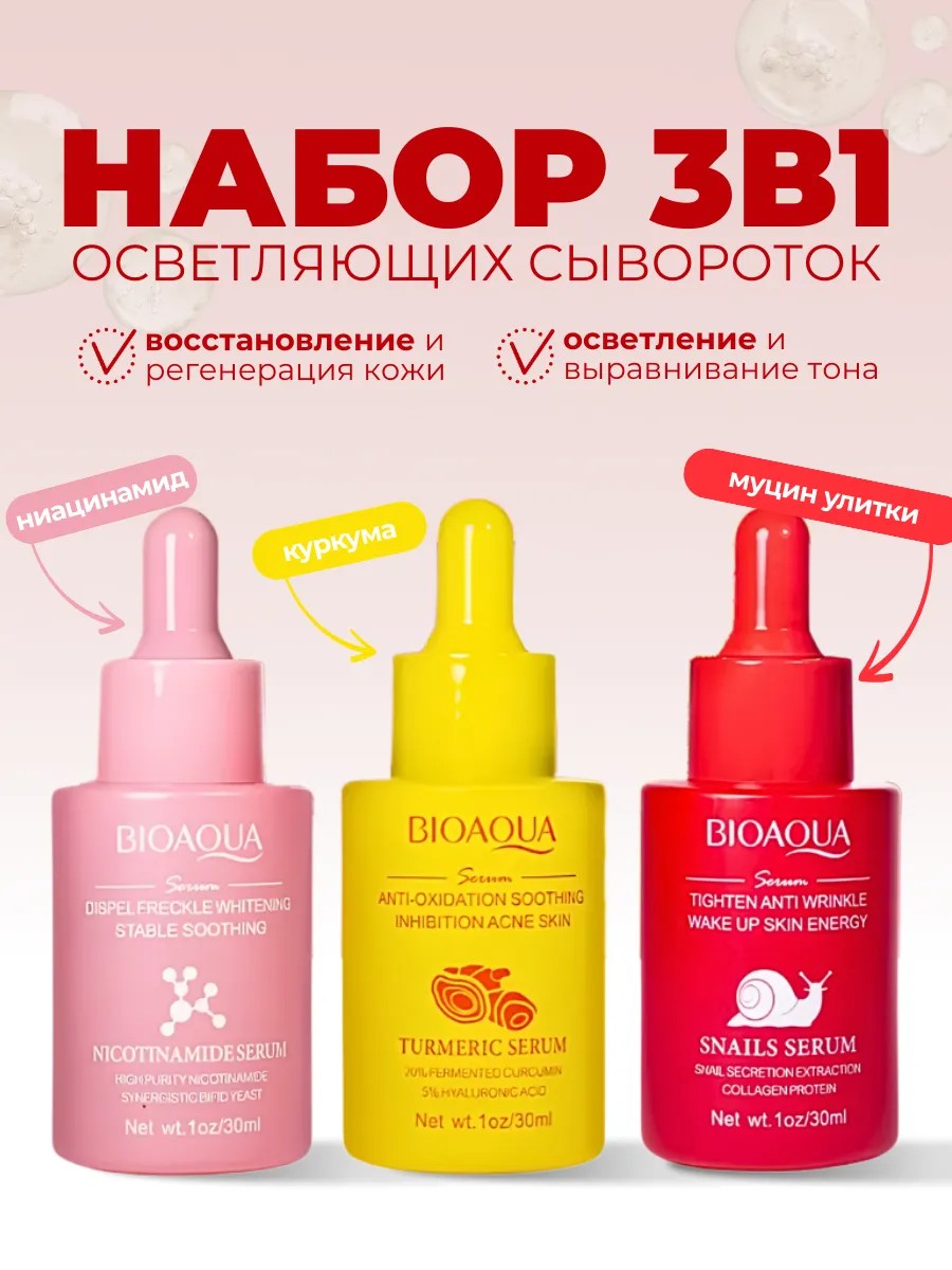 Эффективный уход для красоты и здоровья кожи! Набор BIOAOUA включает три активные сыворотки, каждая из которых решает важные задачи: восстановление, сияние и антивозрастной уход.