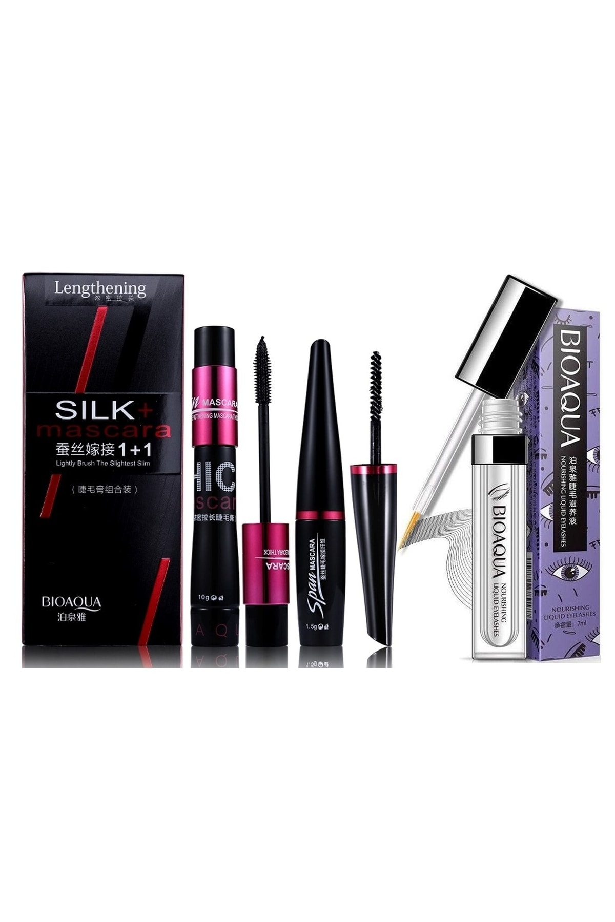 BIOAQUA Silk Lash Mascara Set and Plumping Eyebrow and Lash Serum 3 Pieces