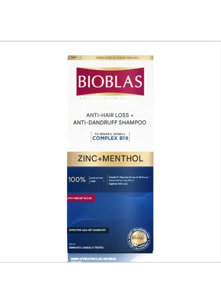 | Full product name | Bioblas 2 in 1 anti-dandruff and anti-hair loss shampoo with zinc, menthol and B19 complex, natural strengthening care without parabens, 360 ml, Turkey |