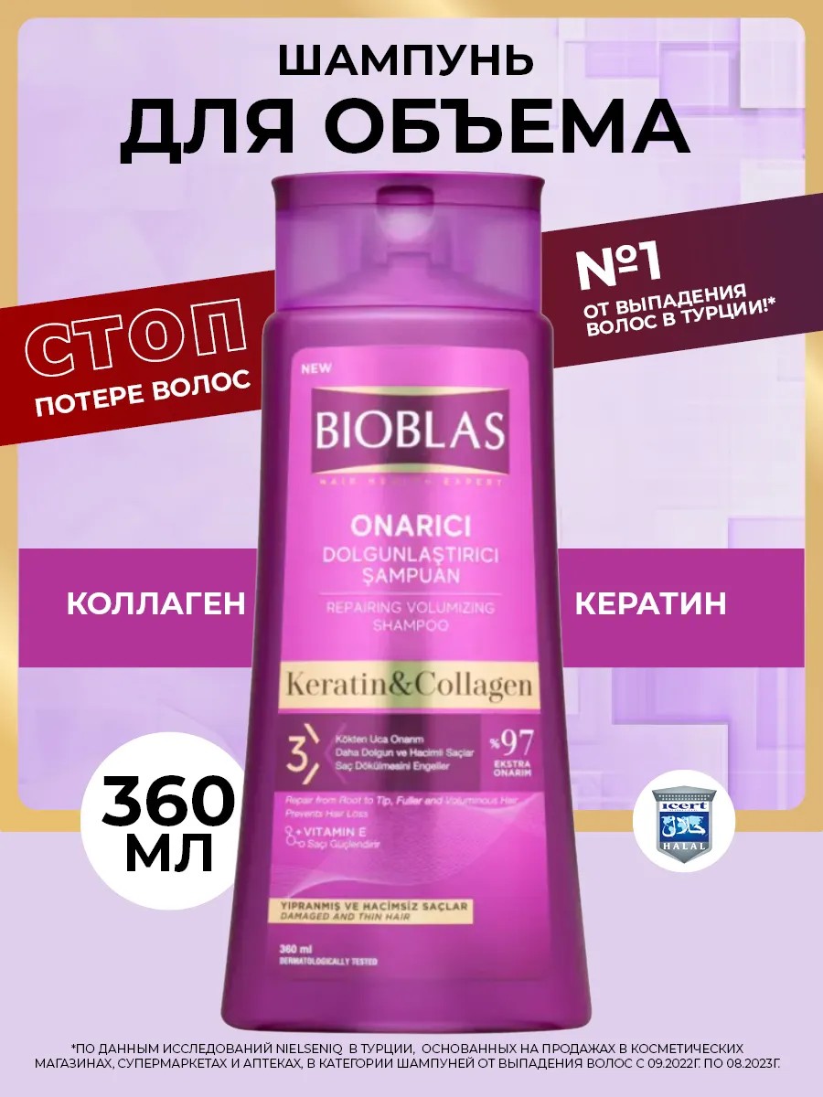 BIOBLAS Шампунь от выпадения и для объёма с коллагеном и кератином
