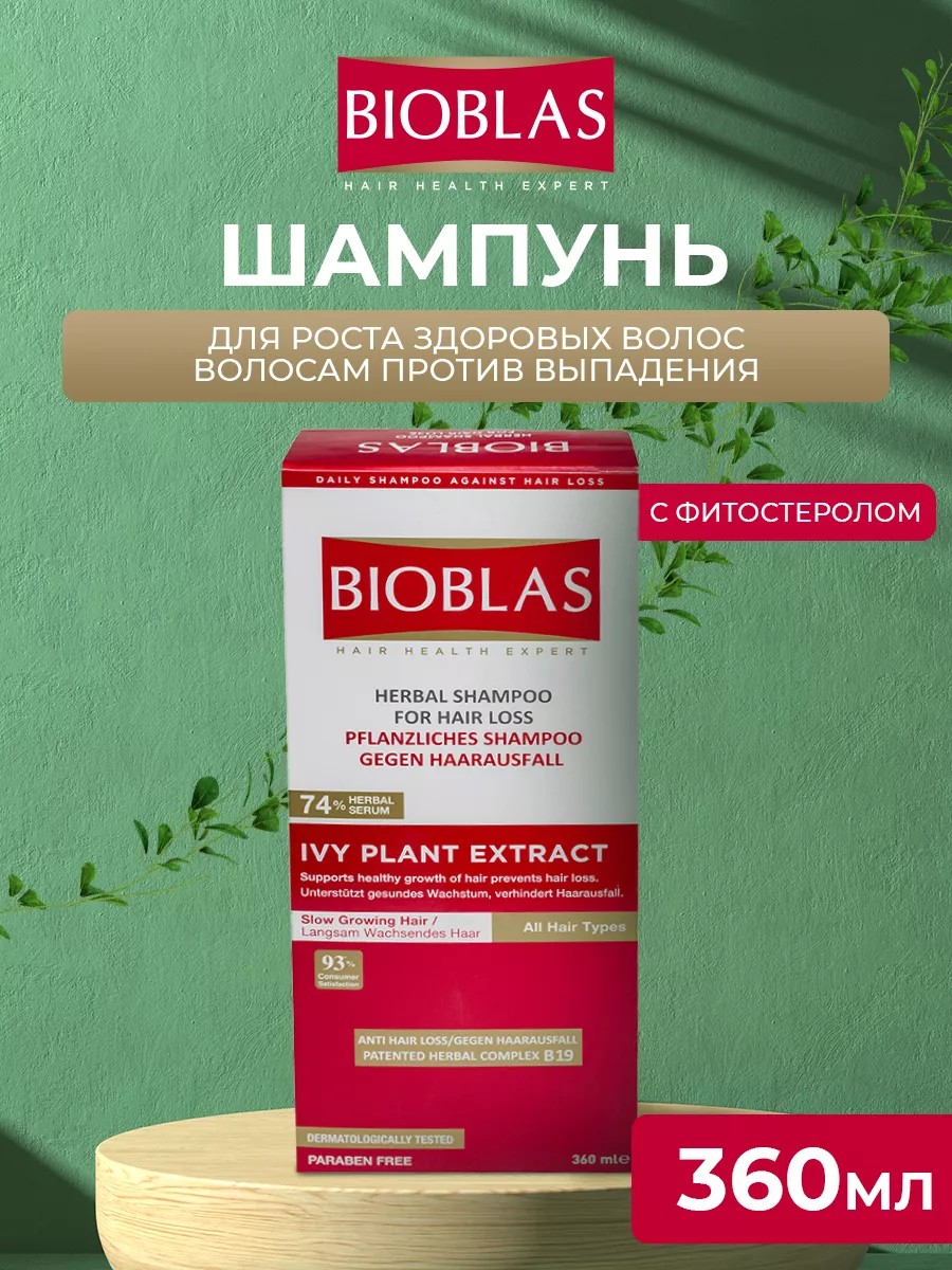 | Полное наименование товара | Шампунь Bioblas с экстрактом плюща для роста и от выпадения волос укрепляющий, с фитостеролом и комплексом B19, без парабенов, 360 мл, Турция |