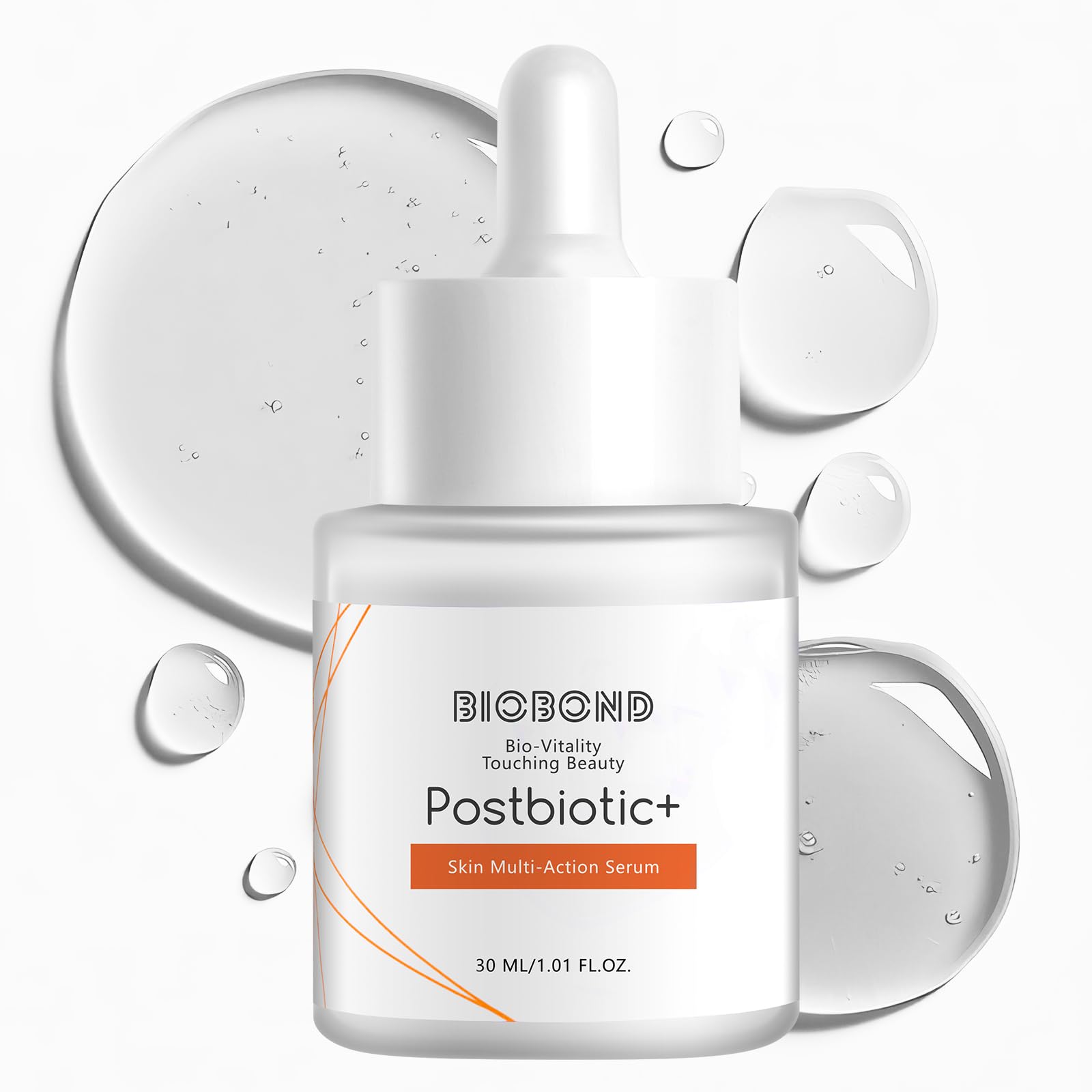 Experience the boosting power of our advanced postbiotic care, designed to support your skin's thriving vitality. For optimal compatibility, we recommend a patch test. Incorporate it into your personal skincare routine to witness transformative results. Should you have any questions, we are committed to serving you to the end. This 100 vegan and natural-derived serum is free from parabens and artificial colors. Its gentle formula provides essential barrier support and is perfect for your daily skincare routine. The silky texture absorbs quickly, leaving skin comforted and strengthened. Our clinically-tested formula is enriched with Hyaluronic Acid and Betaine for long-lasting moisture and a plumping effect, restoring skin's bounce. It effectively soothes sensitive skin and reduces redness, working to brighten and even out skin tone for a healthy-looking glow. Formulated with beneficial Lactobacillus Postbiotic, Centella Asiatica, Active Tenascin and Kefir Bio-Polysaccharides. This blend helps balance the skin's microbiome, soothe irritation, and promote a lifted, tightened appearance. It works to rejuvenate the skin, combating signs of sagging skin for a more youthful contour. BIOBOND lightweight postbiotic serum activates skin's antioxidant potential to enhance radiance and accelerates skin renewal. It effectively repairs and strengthens the skin barrier, providing comprehensive protection for firmer, more resilient skin, which can indirectly contribute to a reduction in the appearance of wrinkles.