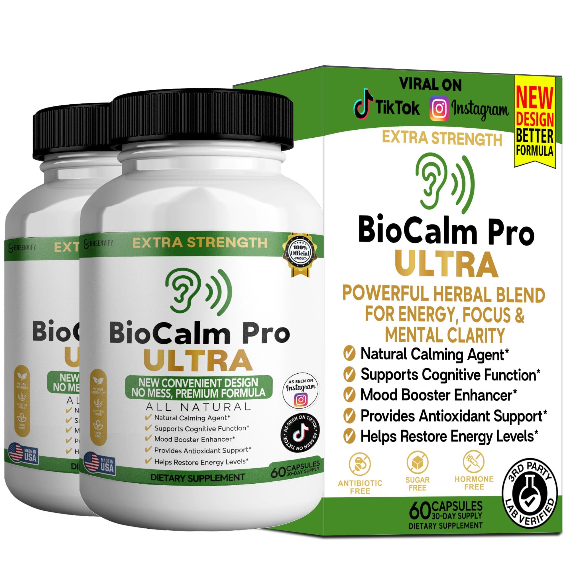 BioCalm Pro Ultra Extra Strength, Natural Calming Agent, Red Asian Ginseng Ginkgo Biloba, 60 Capsules.