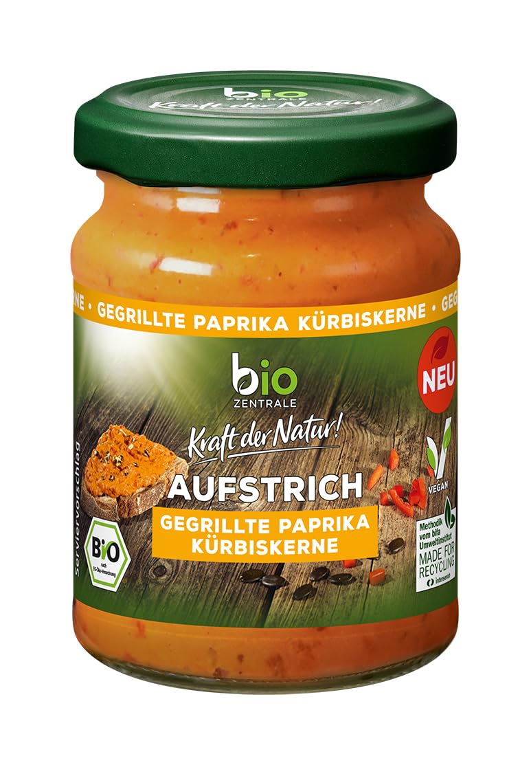 Our biocentrum spread grilled pepper pumpkin seeds is a creamy fine bread spread that scores with an intensely fresh taste according to grilled peppers.The spicy spread is vegan and gluten -free.It is refined with pumpkin seeds that give the spread a nutty note and does not require a thickener.It tastes particularly tasty on fresh bread, rolls, crispy bread or as a dip. Ingredients / ingredients Ingredients: 45 % paprika*grilled, sunflower seeds*, water, sunflower oil*high oleic, onions*, 5 % pumpkin seed*, lemon juice*from lemon juice concentrate*, tomato paste*double concentrated, agavensirup*, paprika*, apple cider vinegar*, sea salt*, Black pepper.*from controlled-ecological agriculture.Can contain traces of fish, milk and mustard. Address manufacturer/importer D - 84384 Ulbering More delivery - 6 x 125 g (6 -pack) bread spread grilled peppers pumpkin seeds in the benefit pack.Vegan and lactose -free.Without a thickener - the spread does not require a thickener.Vegan & Gluten -free - the spread grilled pepper pumpkin seeds is suitable for vegan and gluten -free nutrition.Pumpkin seeds - the spread is refined with pumpkin seeds that give it a nutty note.With 45 % grilled peppers - our biocentral bread spread grilled pepper pumpkin seeds consists of 45 % grilled peppers. Unser biozentrale Aufstrich gegrillte Paprika Kürbiskerne ist ein cremig feiner Brotaufstrich, der mit einem intensiv frischen Geschmack nach gegrillter Paprika punktet. Der würzige Aufstrich ist vegan und glutenfrei. Er ist mit Kürbiskernen verfeinert, die dem Aufstrich eine nussige Note verleihen und kommt ohne Verdickungsmittel aus. Besonders lecker schmeckt er auf frischem Brot, Brötchen, Knusperbrot oder auch als Dip. INHALTSSTOFFE / ZUTATEN ZUTATEN: 45 % Paprika* gegrillt, Sonnenblumenkerne*, Wasser, Sonnenblumenöl* high oleic, Zwiebeln*, 5 % Kürbiskerne*, Zitronensaft* aus Zitronensaftkonzentrat*, Tomatenmark* zweifach konzentriert, Agavensirup*, Paprika*, Apfelessig*, Meersalz, Knoblauch*, Pfeffer* schwarz. *aus kontrolliert-ökologischer Landwirtschaft. Kann Spuren von Fisch, Milch und Senf enthalten. ANSCHRIFT HERSTELLER/IMPORTEUR D - 84384 Ulbering MehrLIEFERUMFANG – 6 x 125 g (6er Pack) Brotaufstrich gegrillte Paprika Kürbiskerne im Vorteilspack. Vegan und laktosefrei. OHNE VERDICKUNGSMITTEL – Der Aufstrich kommt ohne Verdickungsmittel aus. VEGAN & GLUTENEFREI – Der Aufstrich gegrillte Paprika Kürbiskerne ist geeignet bei veganer und glutenfreier Ernährung. KÜRBISKERNE – Der Aufstrich ist mit Kürbiskernen verfeinert, die ihm eine nussige Note verleihen. MIT 45 % gegrillter Paprika – Unser biozentrale Brotaufstrich gegrillte Paprika Kürbiskerne besteht zu 45 % aus gegrillter Paprika.biozentrale Brotaufstrich gegrillte Paprika Kürbiskerne, 6 x 125 g, vegan & glutenfrei, mit 45% gegrillter Paprika, mit Kürbiskernen verfeinert, lecker auf Brot oder zum Verfeinern von Gerichten