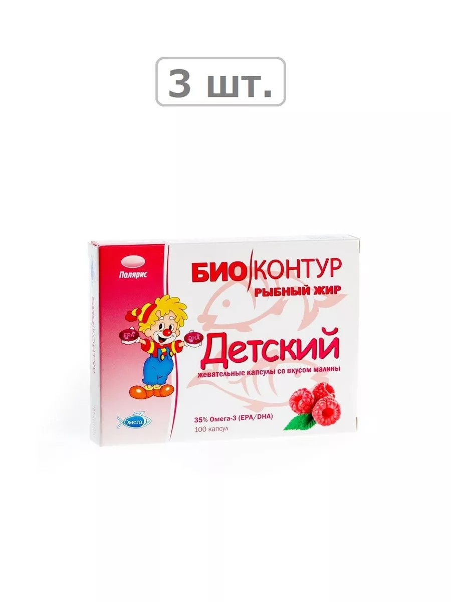 Биоконтур рыбный жир детский n100 капс по 400мг малина-3шт