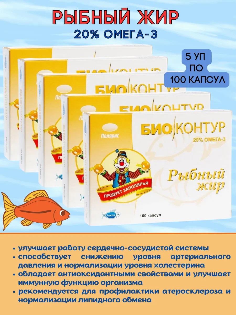 Биоконтур Рыбный жир в капсулах, 20% Омега-3, 5 уп ( 500 шт )