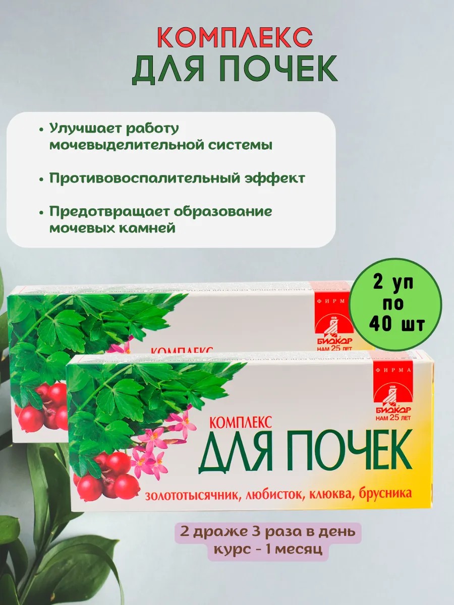 Биокор Комплекс для почек и мочевыводящих путей 2 уп по 40 драже