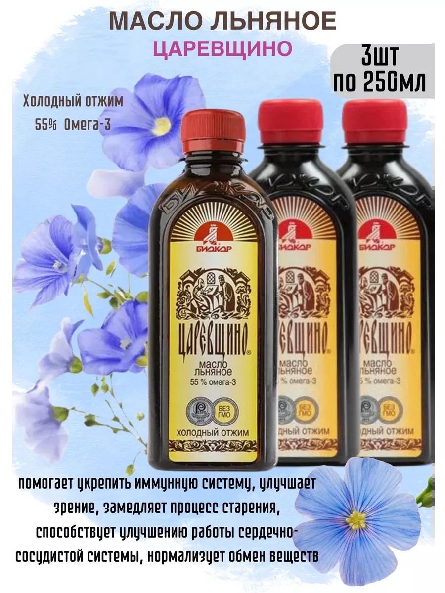 Масло льняное Царевщино - это природный продукт, получаемый из семян льна методом холодного отжима, который сохраняет все полезные свойства масла. Оно богато омегажирными кислотами, витаминами группы В Е и Ф, а также минералами, такими как кальций магний фосфор и калий. Масло льна Царевщино обладает множеством полезных свойств - оно помогает укрепить иммунную систему, улучшает зрение и замедляет процесс старения, способствует улучшению работы сердечно-сосудистой системы, нормализует обмен веществ и многое другое. Масло льна Царевщино 250 мл идеально подходит для использования в кулинарии, добавляя в салаты, овощные блюда, йогурты и смузи.Масло льняное Царевщино - натуральный высококачественный продукт для здорового питания, источник незаменимых полиненасыщенных жирных кислот, 55% которых приходится на Омега - 3.