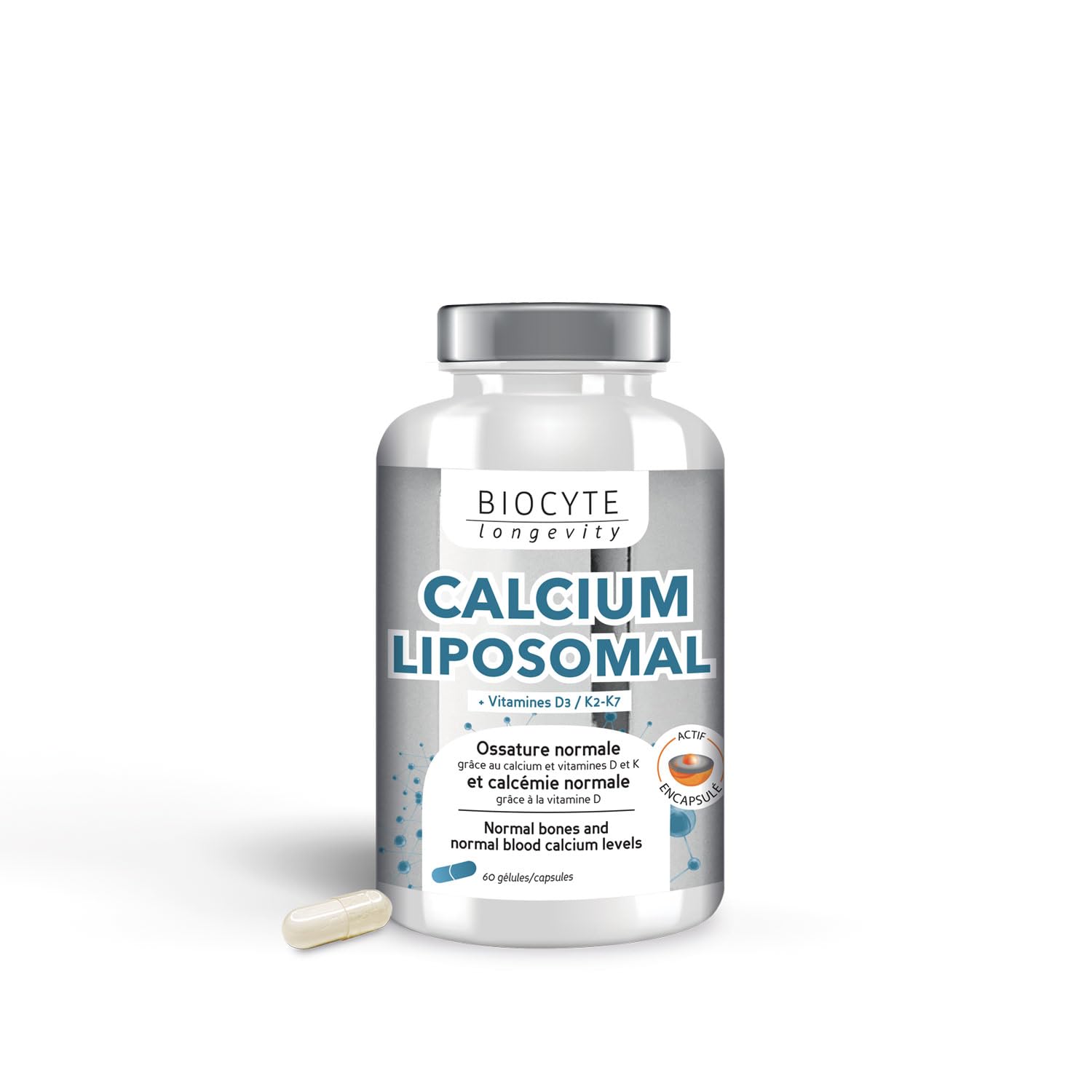 ABOUT BIOCYTE LABORATORY: Our products, the result of many years of research, are designed with quality criteria and clinically proven effectiveness. We have been awarded 10 times the Prix de la Victoire de la Beauté, a jury composed of 100 consumers who blindly test products to avoid being influenced by the brand. Biocyte, 1555 Avenue de la Plaine Mougins 06250 FR, Customer Service Phone: 080-080-8909. USE: The recommended use of Biocyte Liposomal Calcium food supplement is 3 capsules per day. Take all at once with a glass of water. This pack contains 60 capsules, or a 20-day program. Not recommended for pregnant or breastfeeding women or children under 12 years of age without the advice of a healthcare professional. RECOGNIZED ACTIVE INGREDIENTS: Calcium contributes to normal bone structure and calcium levels. Supplemented with vitamins, this dietary supplement will contribute to your bone well-being. MICRO-ENCAPSULATION TECHNIQUE: Biocyte's Liposomal Calcium dietary supplement based on calcium, vitamin D3 and vitamin K2 is intended for people with calcium, vitamin D and K deficiency and in cases of bone fragility or growth (menopausal women, seniors and children). It uses the micro-encapsulation technique, for better absorption by the body. BONES DIETARY SUPPLEMENT: Biocyte's Liposomal Calcium dietary supplement contributes to normal bone structure and calcium levels, its formula combines calcium with vitamin D3 and K2 MK7.A PROPOS DU LABORATOIRE BIOCYTE : Nos produits, fruits de longues années de recherche, sont conçus avec des critères de qualité et d'efficacité cliniquement prouvée. Nous avons été récompensé 10 fois au Prix de la Victoire de la Beauté, jury composé à 100 de consommateurs qui teste les produits à l'aveugle pour éviter d'être influencé par la marque. Biocyte, 1555 Avenue de la Plaine Mougins 06250 FR, Téléphone du Service clientèle: 080-080-8909. UTILISATION: La préconisation d'utilisation du complément alimentaire Calcium Liposomal de Biocyte est de 3 gélules par jour. Prendre en une seule fois avec un verre d'eau. Ce pack contient 60 gélules, soit un programme de 20 jours. Déconseillé aux femmes enceintes ou qui allaitent et aux enfants de moins de 12 ans sans l'avis d'un professionnel de santé. DES ACTIFS RECONNUS: Le calcium contribue à réduire à une ossature et une calcémie des os normale. Complété avec des vitamines, ce complément alimentaire contribuera à votre bien-être osseux. TECHNIQUE DE MICRO-ENCAPSULATION: Le complément alimentaire Calcium Liposomal de Biocyte à base de calcium, vitamine D3 et vitamine K2 s'adresse aux personnes ayant une déficience de calcium, vitamine D et K et en cas de fratigilité ou de croissance ossueuce (femme ménopausées, séniors et enfants). Il utilise la technique de micro-encapsulation, pour une meilleure absorption par l'organisme. COMPLEMENT ALIMENTAIRE OSSATURE : Le complément alimentaire Calcium Liposomal de Biocyte contribue à une ossature et une calcémie normale, sa formule associe le calcium à la vitamine D3 et K2 MK7.