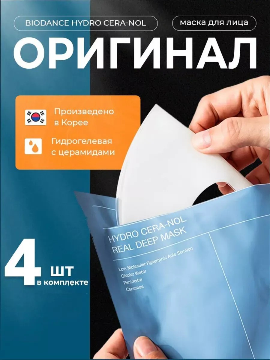 | Комплектация | Набор гидрогелевых масок с церамидами Hydro Cera-Nol Biodance 4шт |