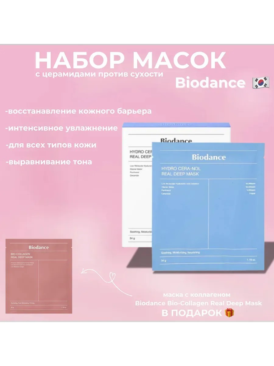 Ночная гидрогелевая маска с церамидами против сухости Biodance Hydro Cera-Nol Real Deep Mask С ПОДАРКОМ — это тающая маска, пропитанная концентрированной эссенцией. Интенсивно питает и увлажняет, заживляет сухую и повреждённую кожу, снижает чувствительность и укрепляет защитный гидролипидный барьер. Устраняет шелушение, смягчает огрубевшие и обветренные участки, запускает внутренние процессы регенерации и снимает раздражение. Восстанавливает за 3-4 часа, а также улучшает состояние кожи за ночь: маску можно использовать во время сна. Содержит церамиды, пантенол, гиалуроновую кислоту, галактомисис, экстракт коллагена, пробиотики и растительные экстракты.