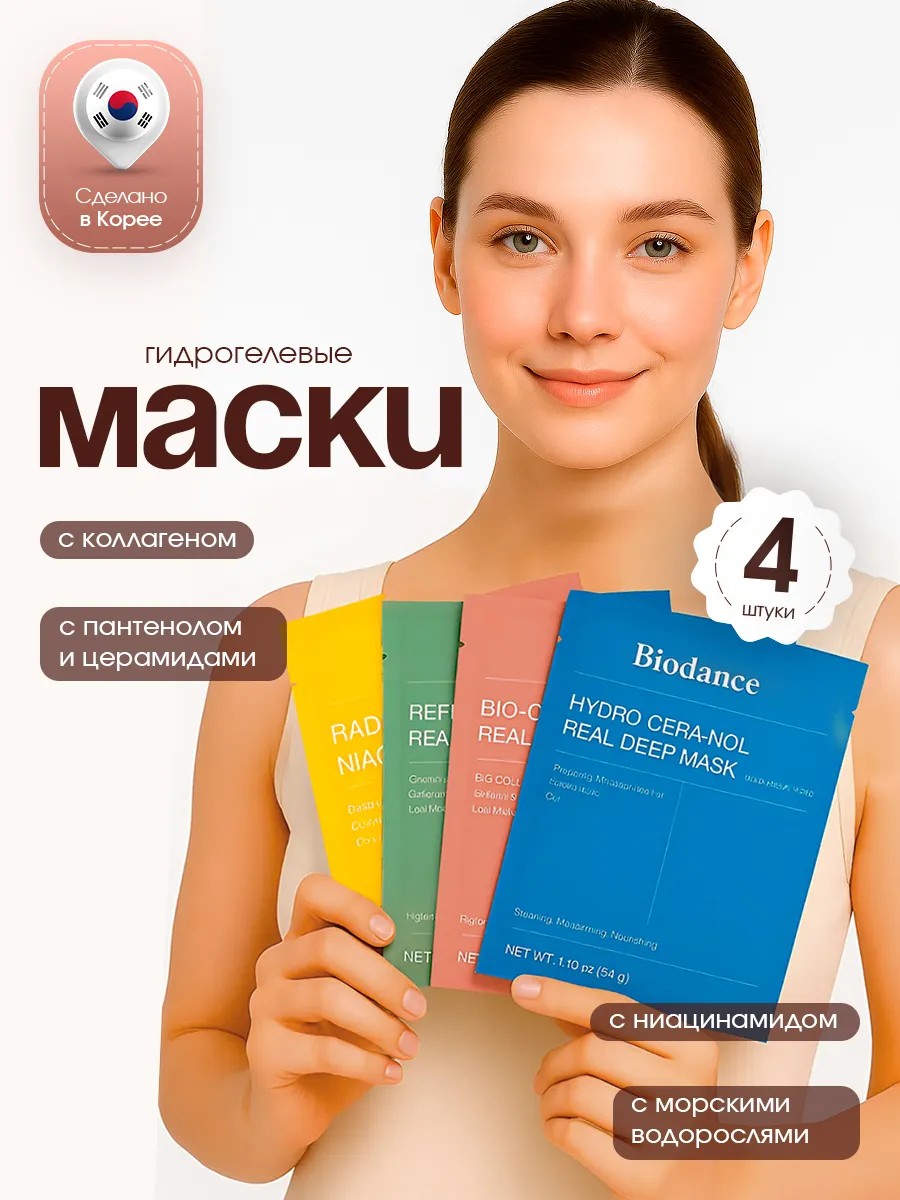 BIODANCE Маска для лица увлажняющая гидрогелевая ночная коллаген 4шт