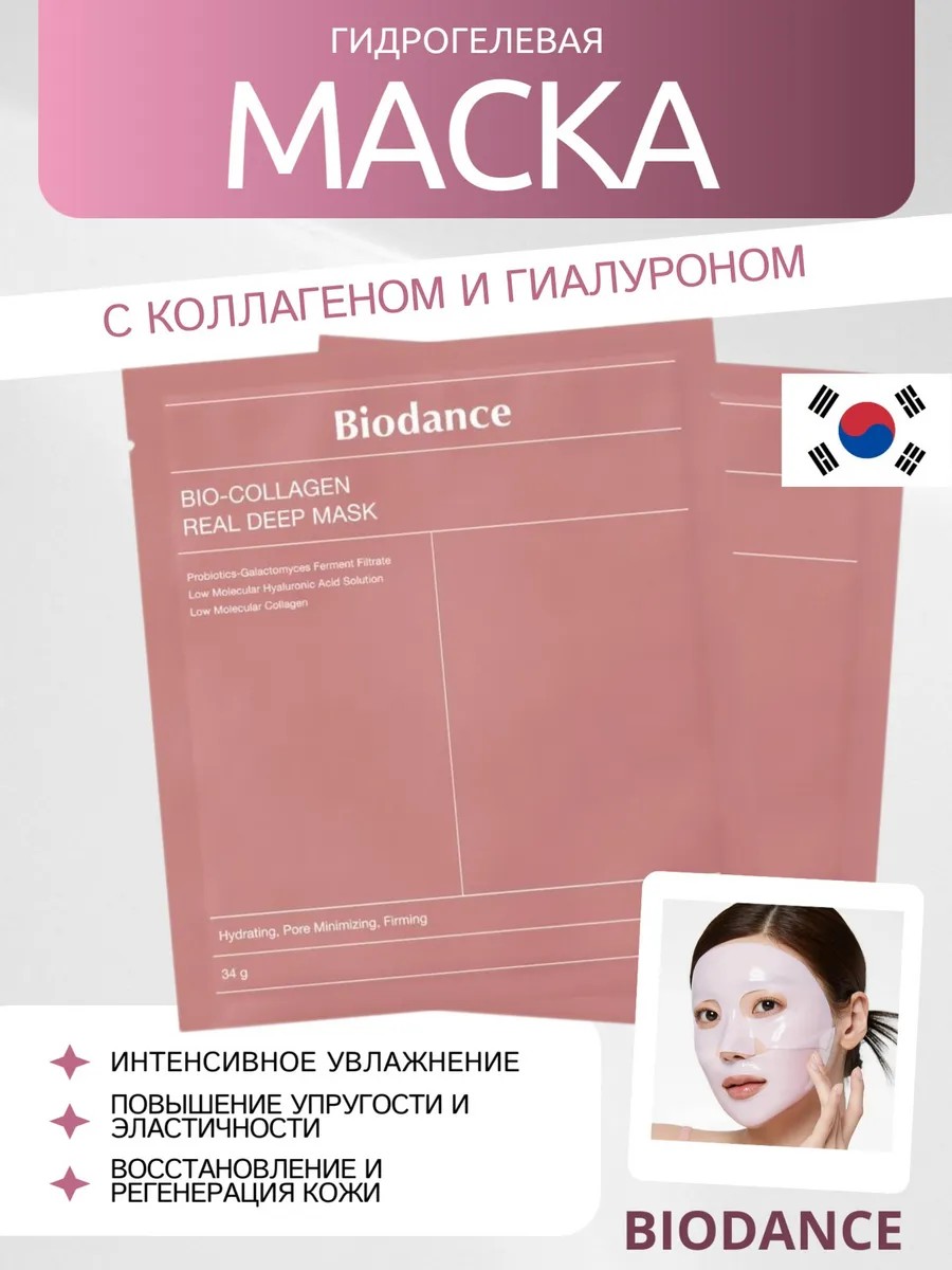 Biodance Bio-Collagen Real Deep Mask — коллагеновая гидрогелевая маска для лица ночная, антивозрастной уход и сужение пор