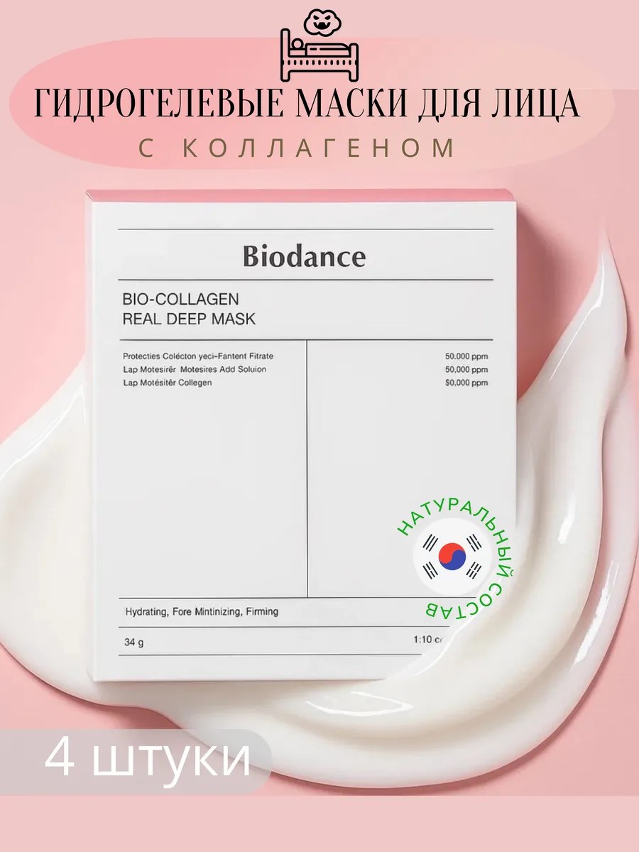 Откройте силу профессионального корейского ухода с набором из 4 масок Biodance Bio-Collagen Real Deep Mask. Это корейские маски, разработанные для глубокого восстановления, подтяжки и выравнивания кожи. Каждая маска гидрогелевая для лица плотно прилегает к коже, обеспечивая максимальное впитывание активных компонентов.