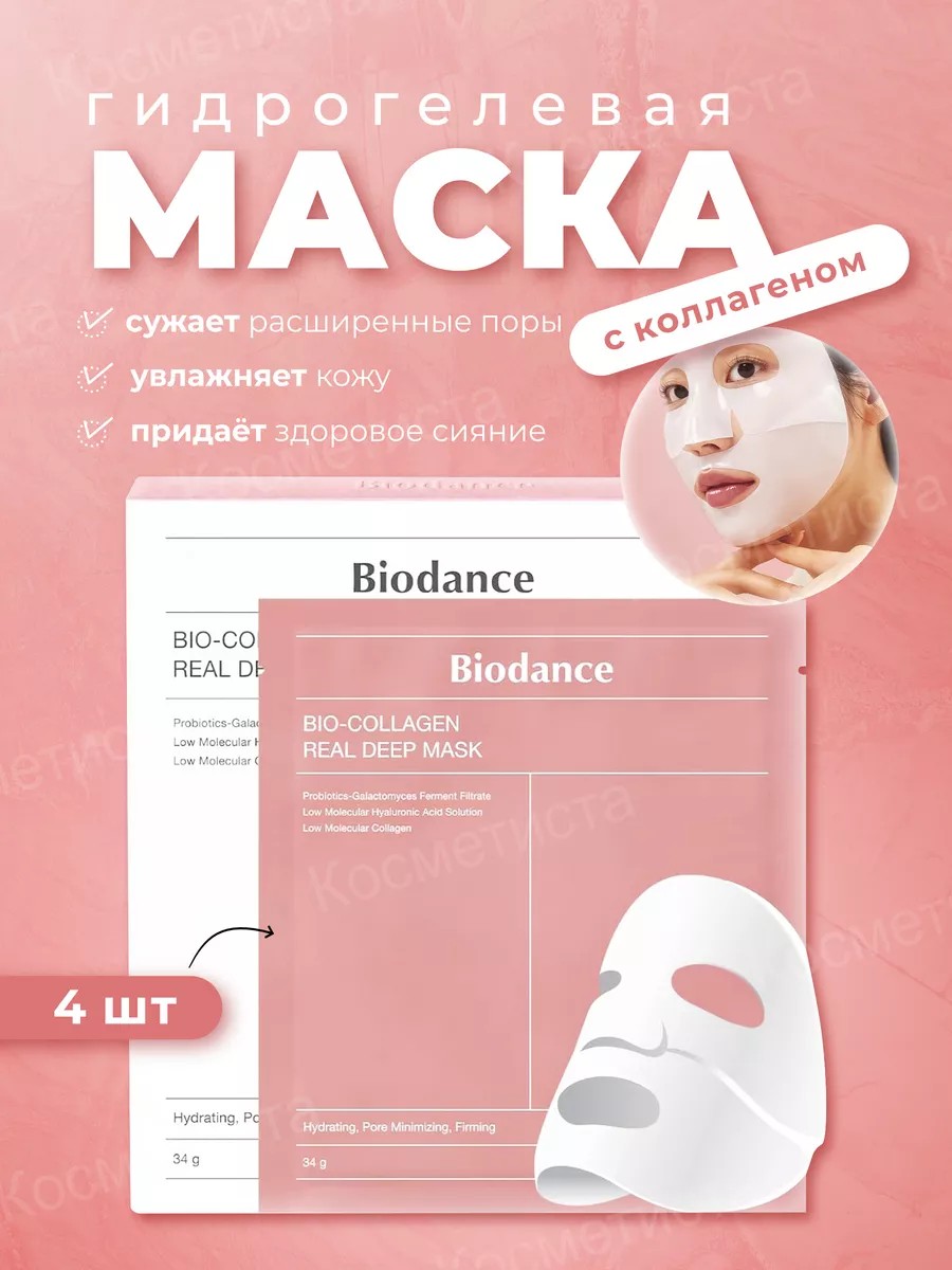 BIODANCE Гидрогелевая, коллагеновая ночная маска для лица 4шт