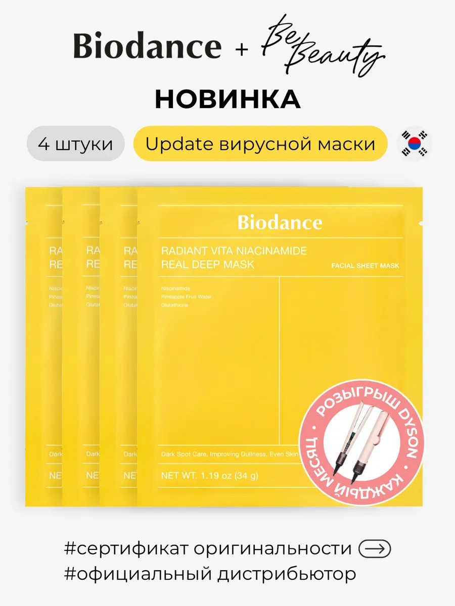 | Полное наименование товара | Гидрогелевая для маска ниацинамидом для сияния кожи Biodance Radiant Vita Niacinamide Real Deep Mask |
