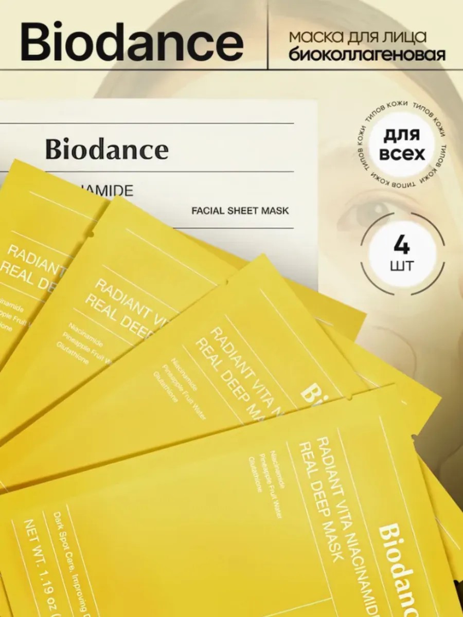 Гидрогелевая маска с ниацинамидом для сияния кожи Biodance Radiant Vita Niacinamide Real Deep Mask тонизирует, устраняет тусклый и землистый цвет лица и выравнивает тон. Увлажняет, восстанавливает гидролипидный баланс.