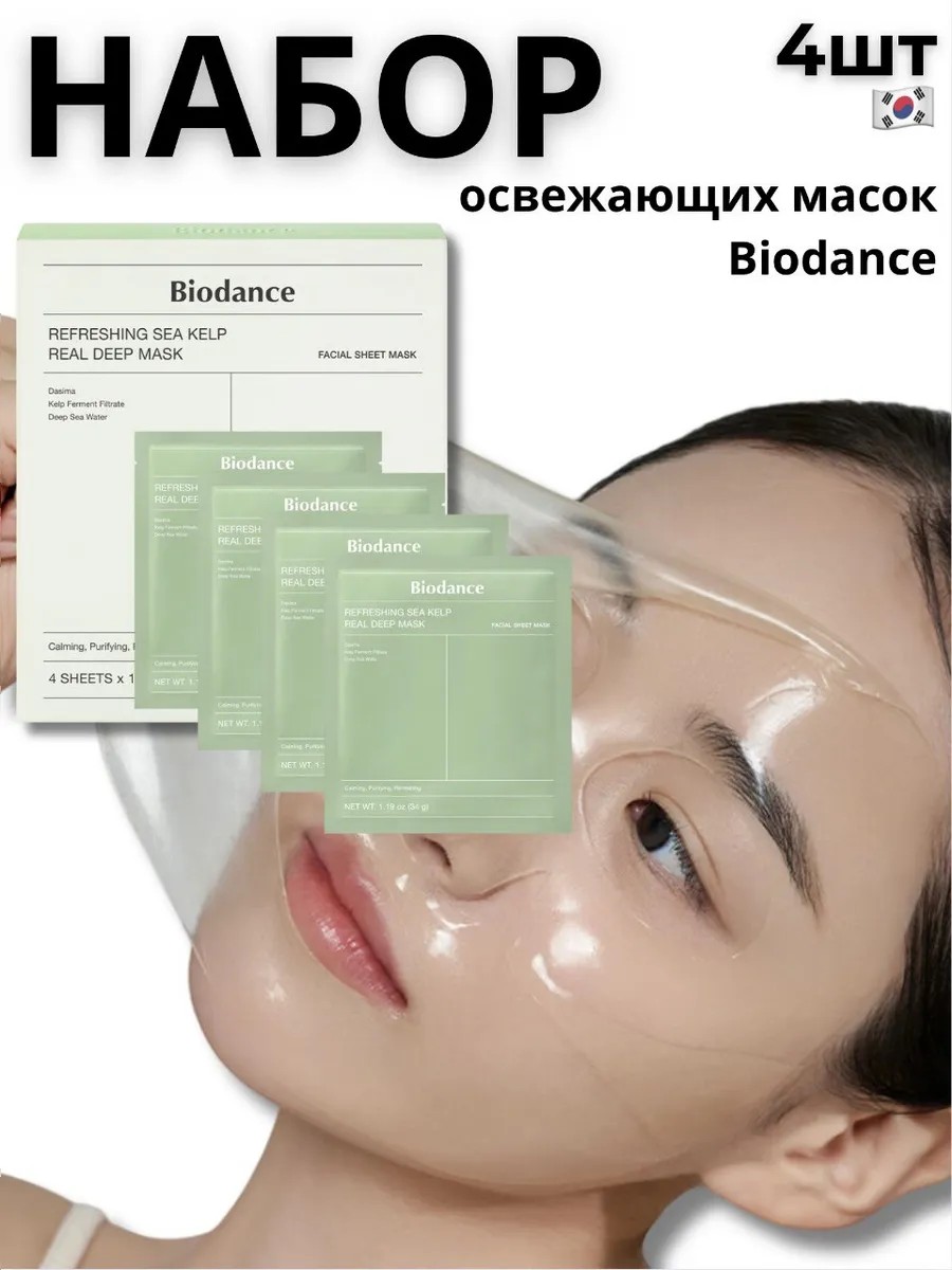 ▎Маска для лица гидрогелевые Biodance Refreshing Sea Kelp Real Deep (4 шт)