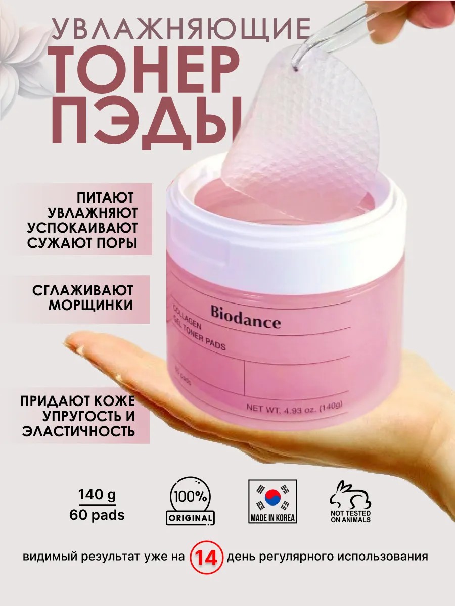 Это увлажняющие гелевые тонер-пэды для лица с коллагеном от известного корейского бренда Biodance.