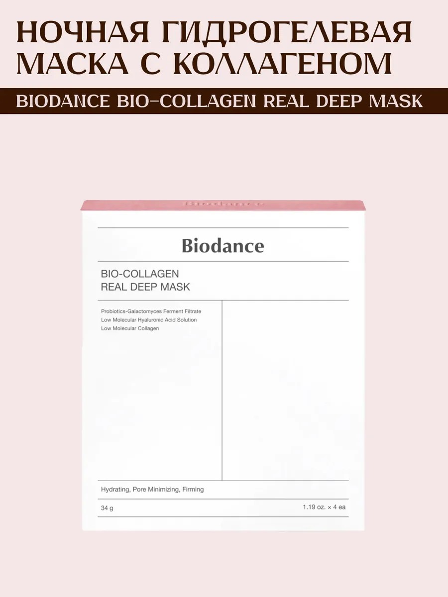 BIODANCE Ночная гидрогелевая маска с коллагеном, 34 г • 4 шт.
