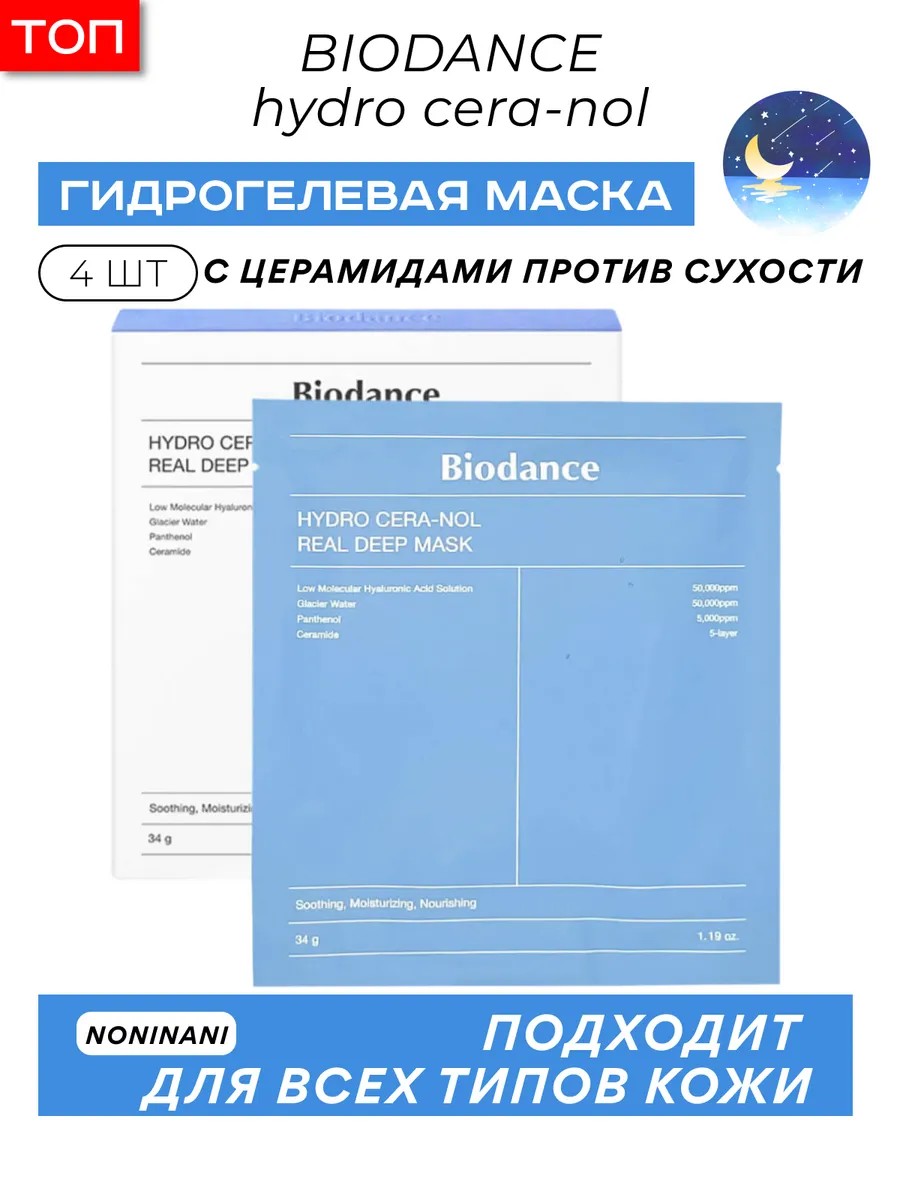 | Комплектация | Biodance Hydro Cera-Nol Real Deep Mask упаковка (4 шт) |